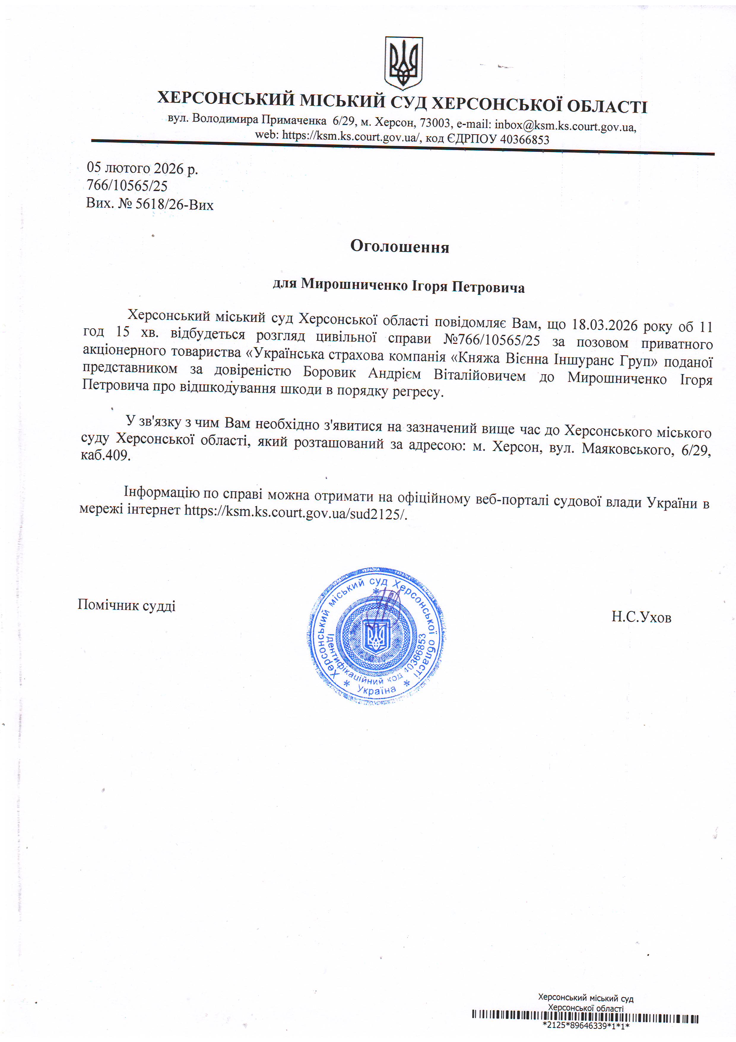 ОГОЛОШЕННЯ ПРО ВИКЛИК ДО СУДУ