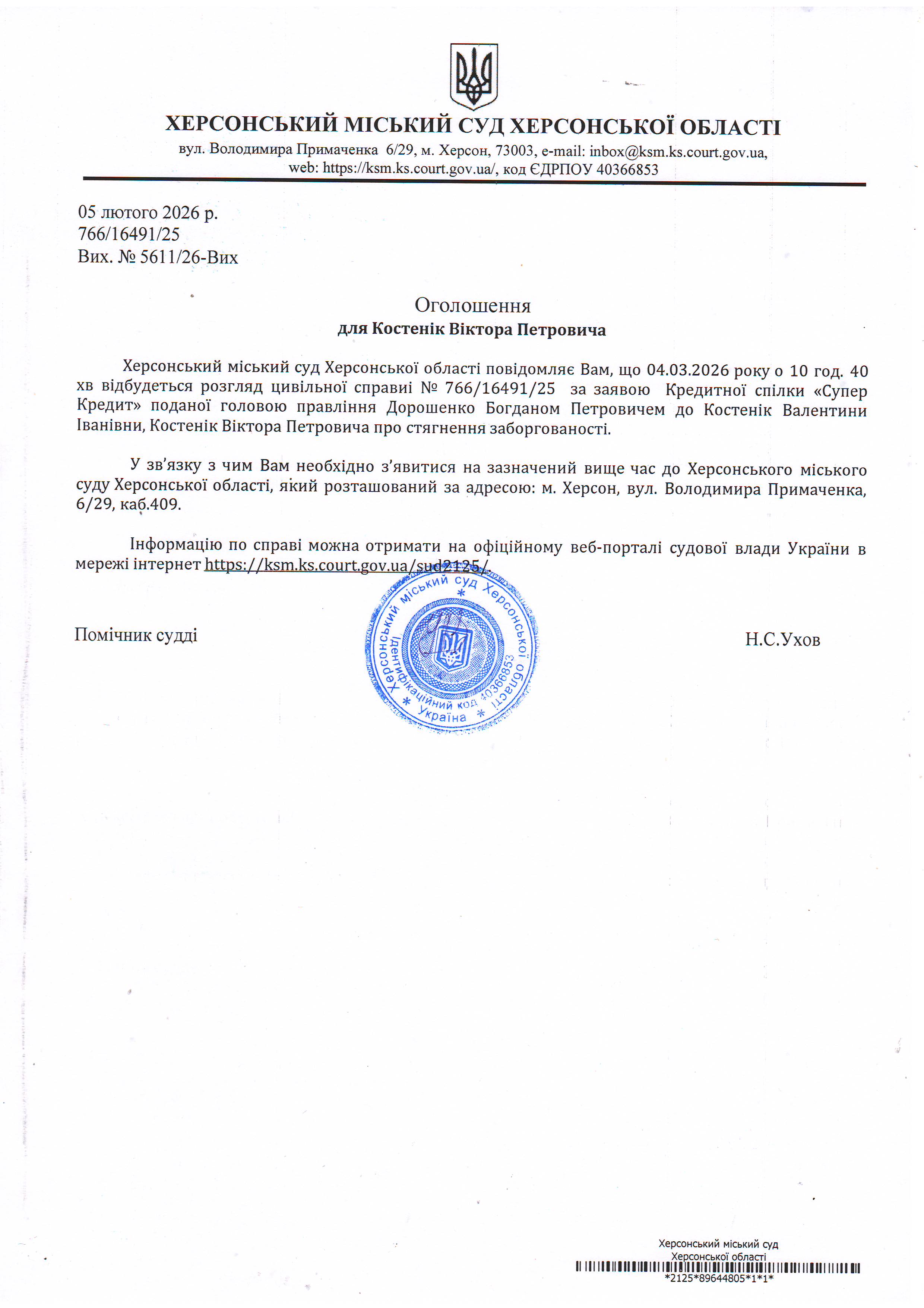ОГОЛОШЕННЯ ПРО ВИКЛИК ДО СУДУ