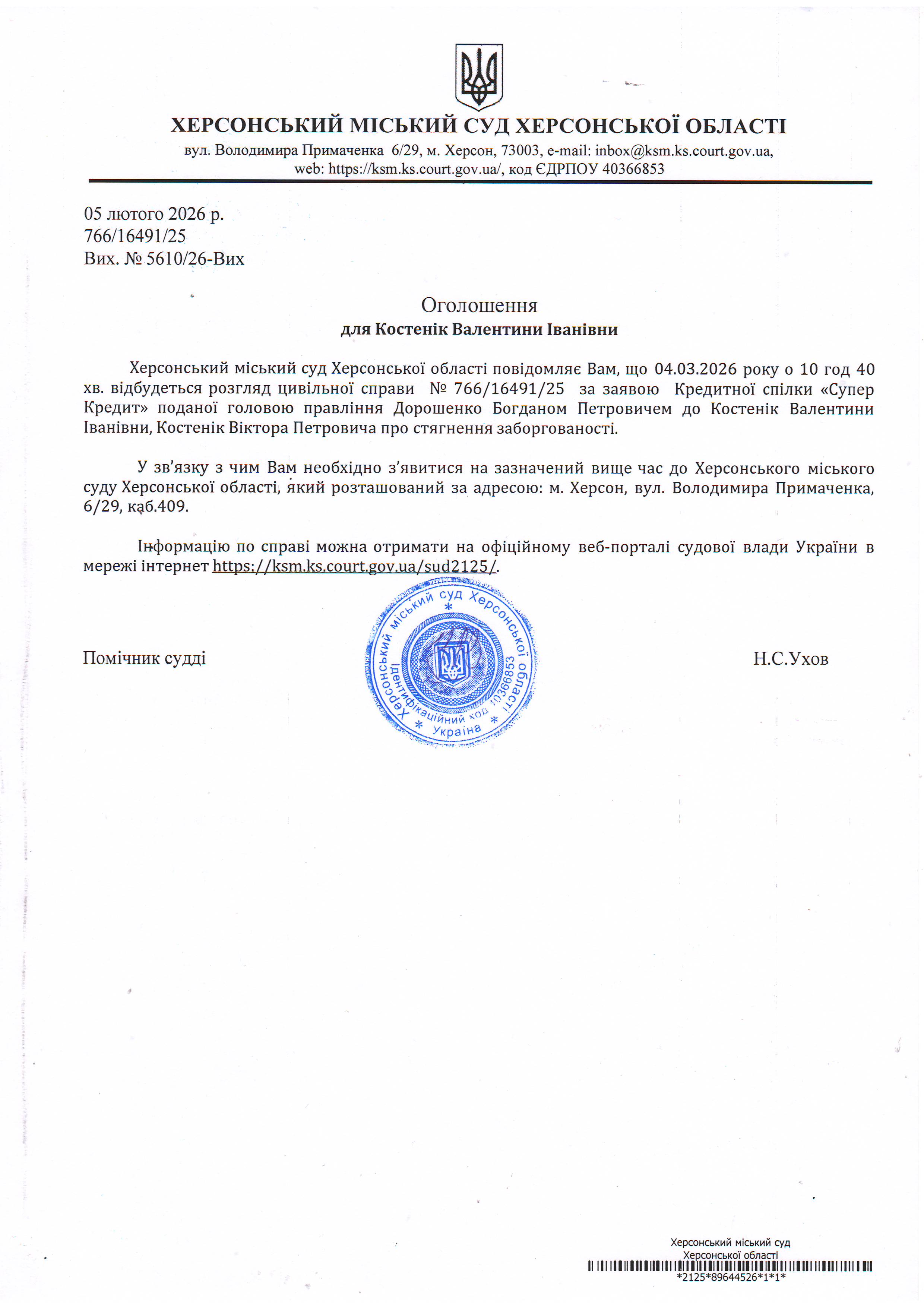 ОГОЛОШЕННЯ ПРО ВИКЛИК ДО СУДУ