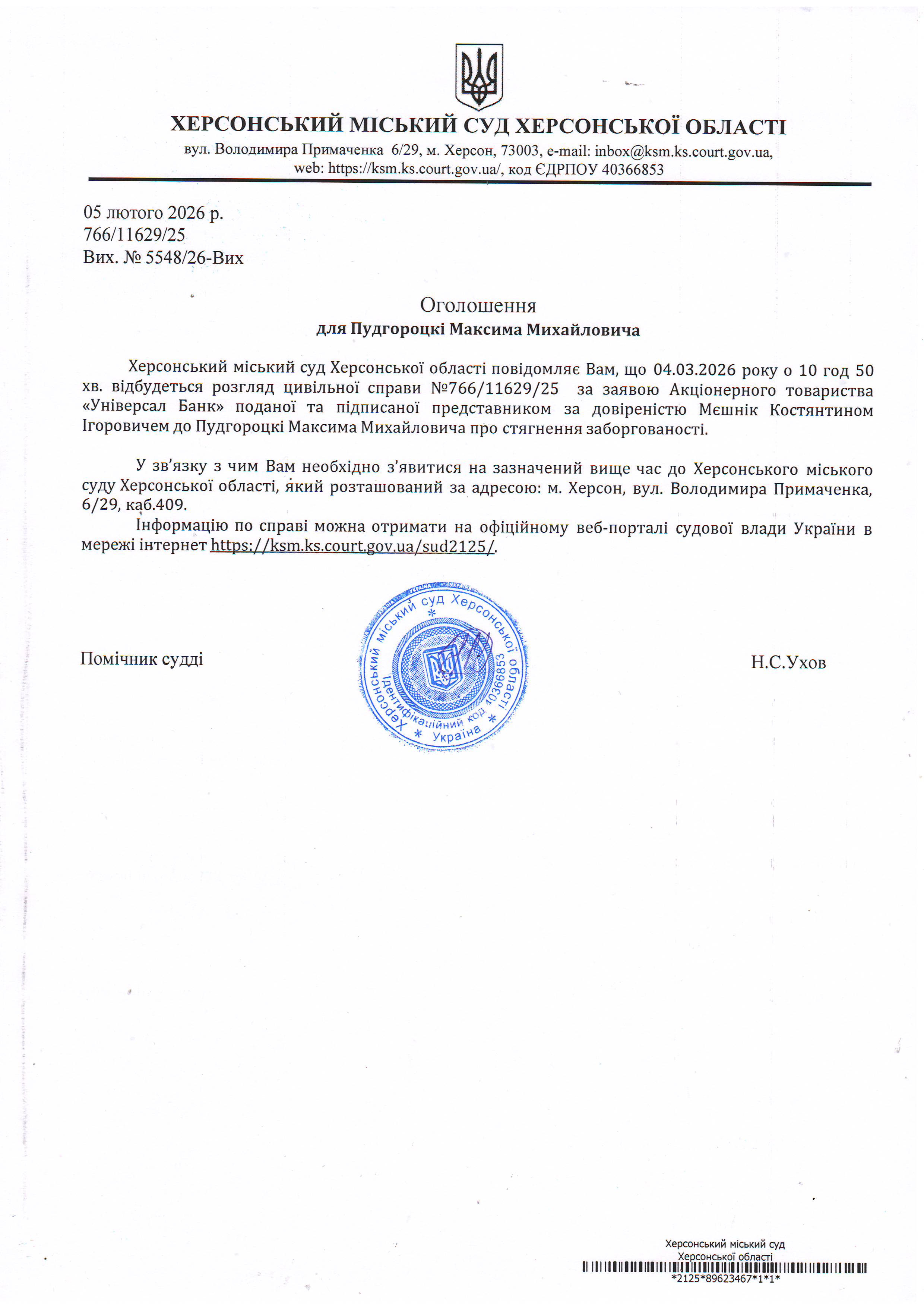 ОГОЛОШЕННЯ ПРО ВИКЛИК ДО СУДУ