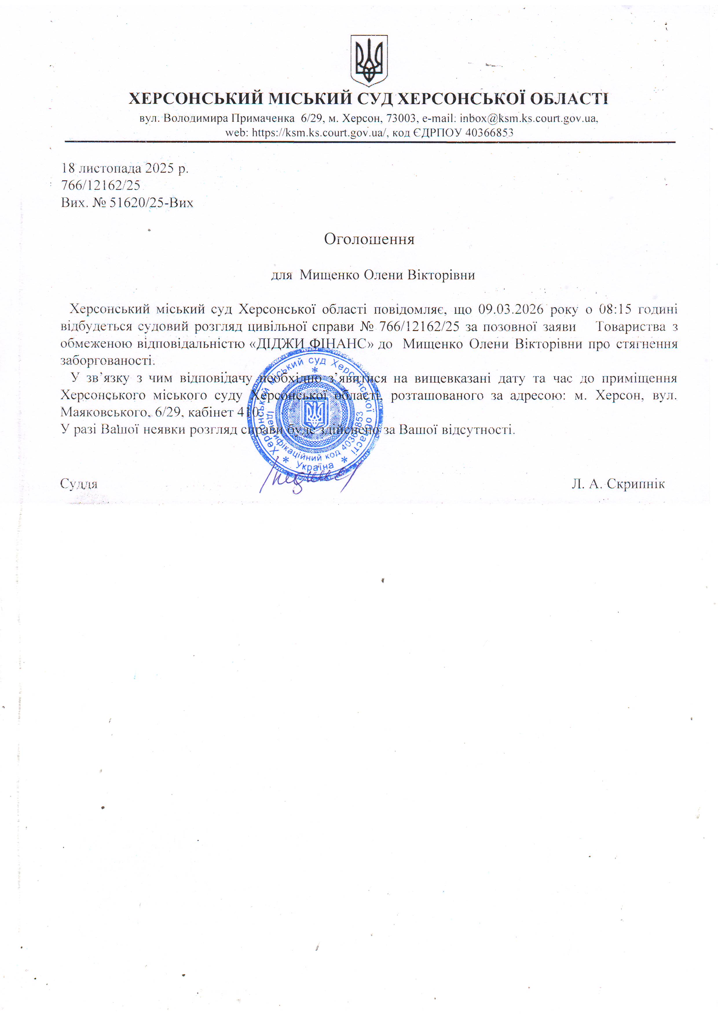 ОГОЛОШЕННЯ ПРО ВИКЛИК ДО СУДУ