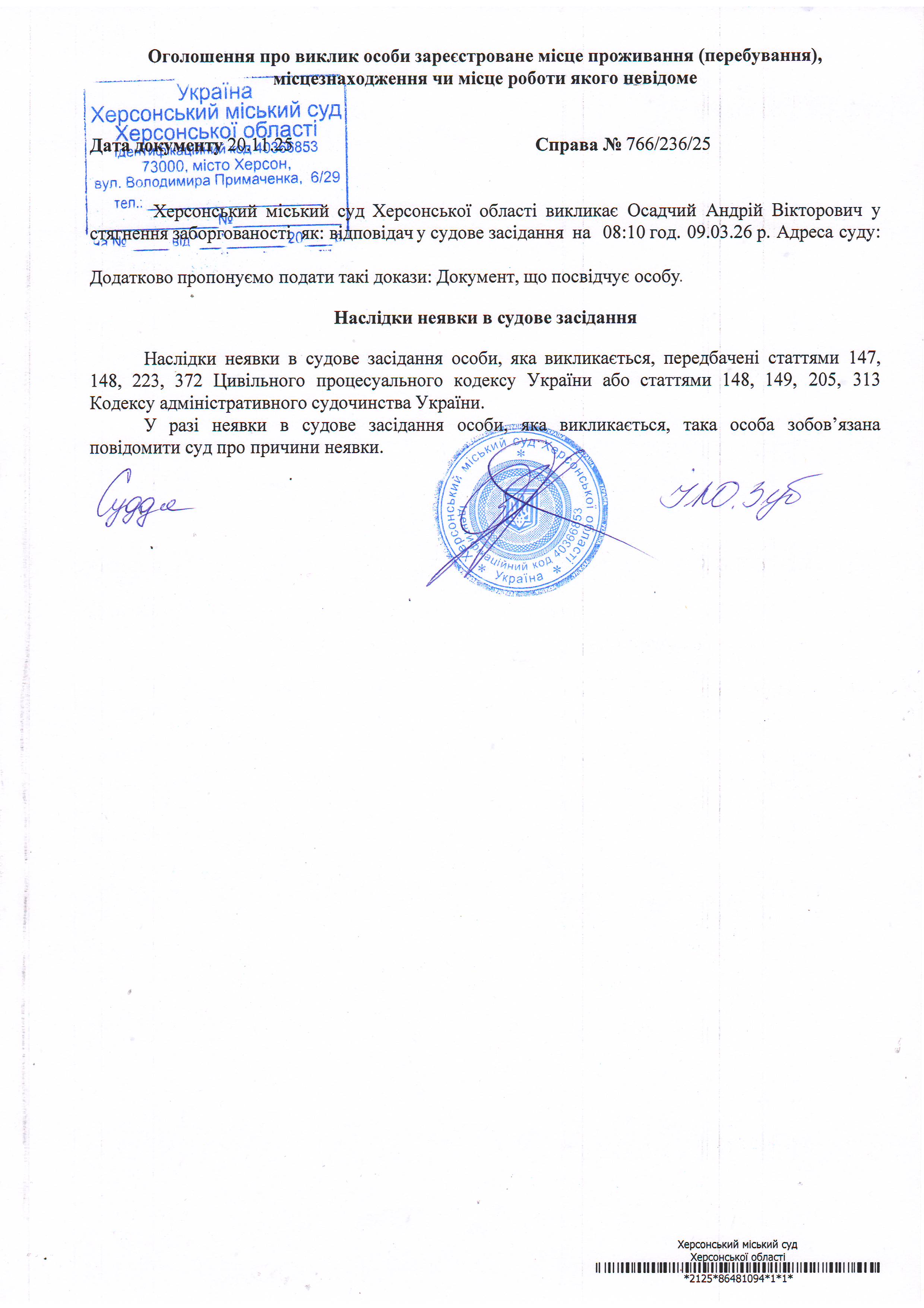 ОГОЛОШЕННЯ ПРО ВИКЛИК ДО СУДУ