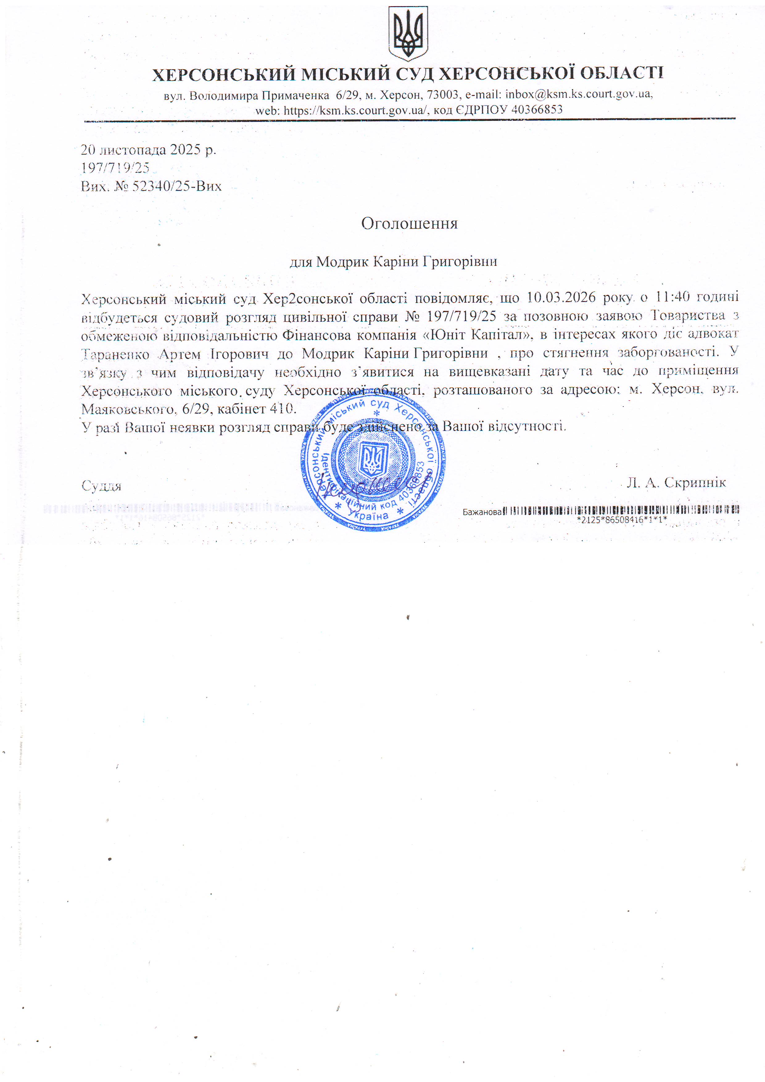 ОГОЛОШЕННЯ ПРО ВИКЛИК ДО СУДУ
