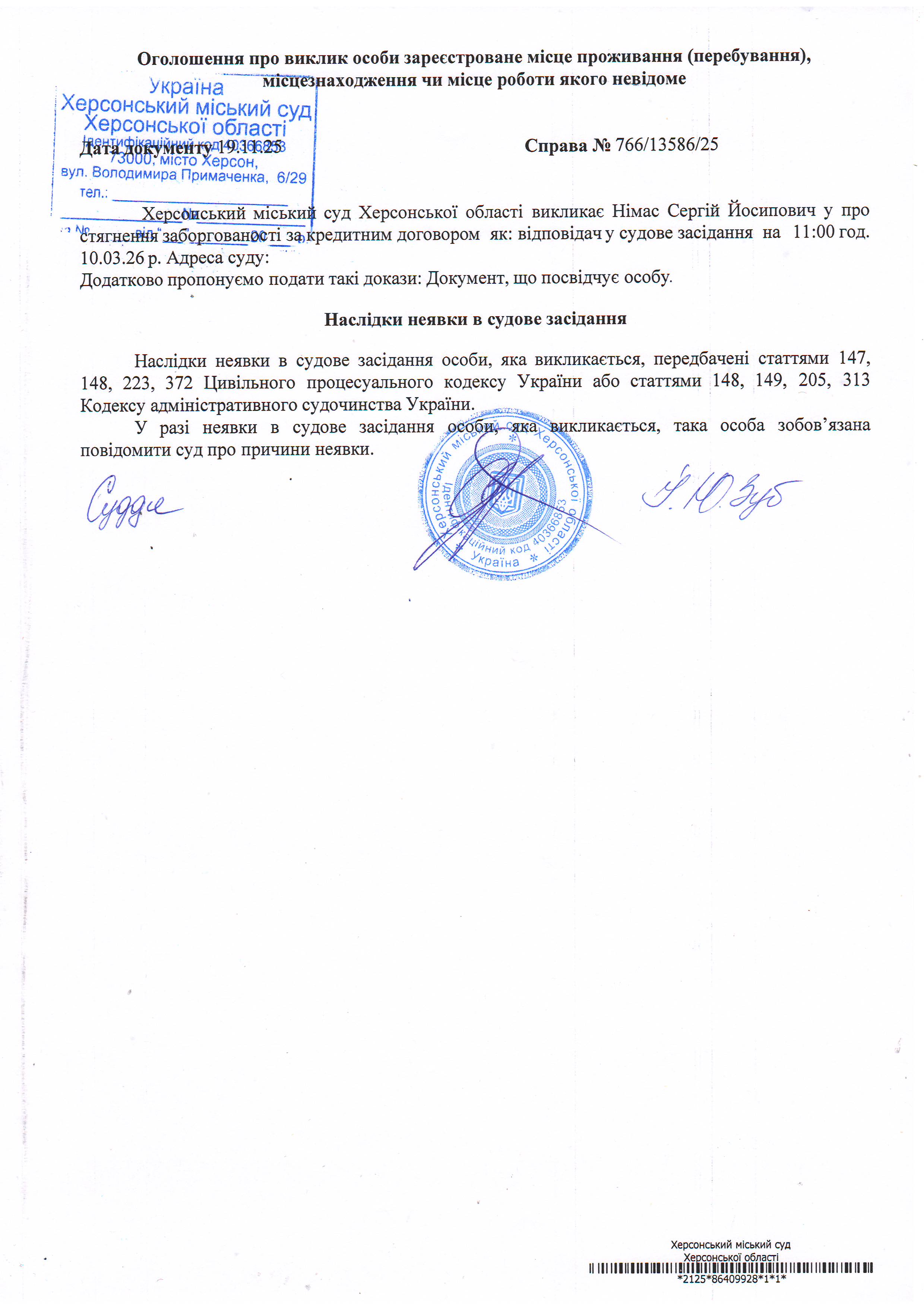 ОГОЛОШЕННЯ ПРО ВИКЛИК ДО СУДУ