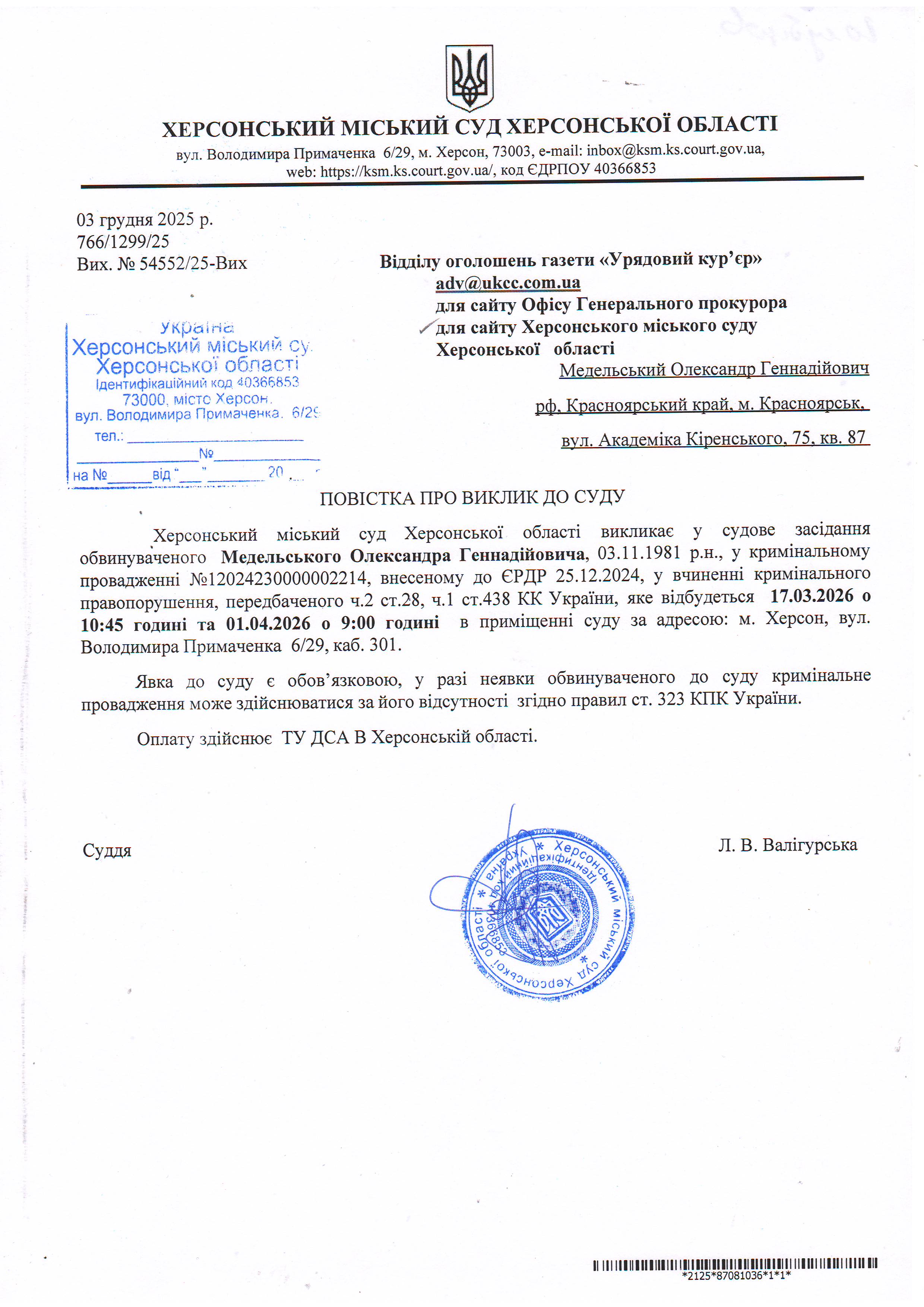 ОГОЛОШЕННЯ ПРО ВИКЛИК ДО СУДУ