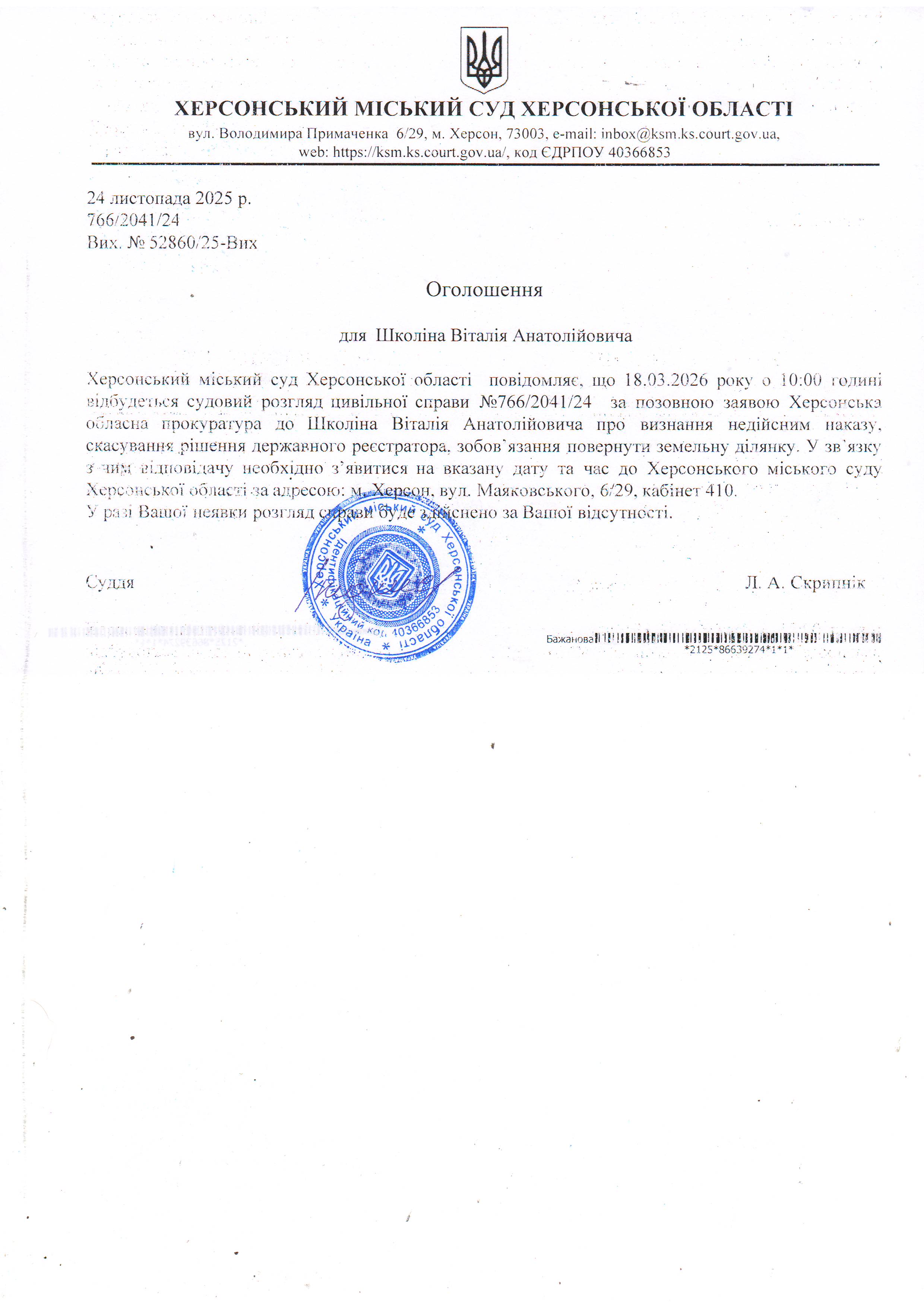 ОГОЛОШЕННЯ ПРО ВИКЛИК ДО СУДУ