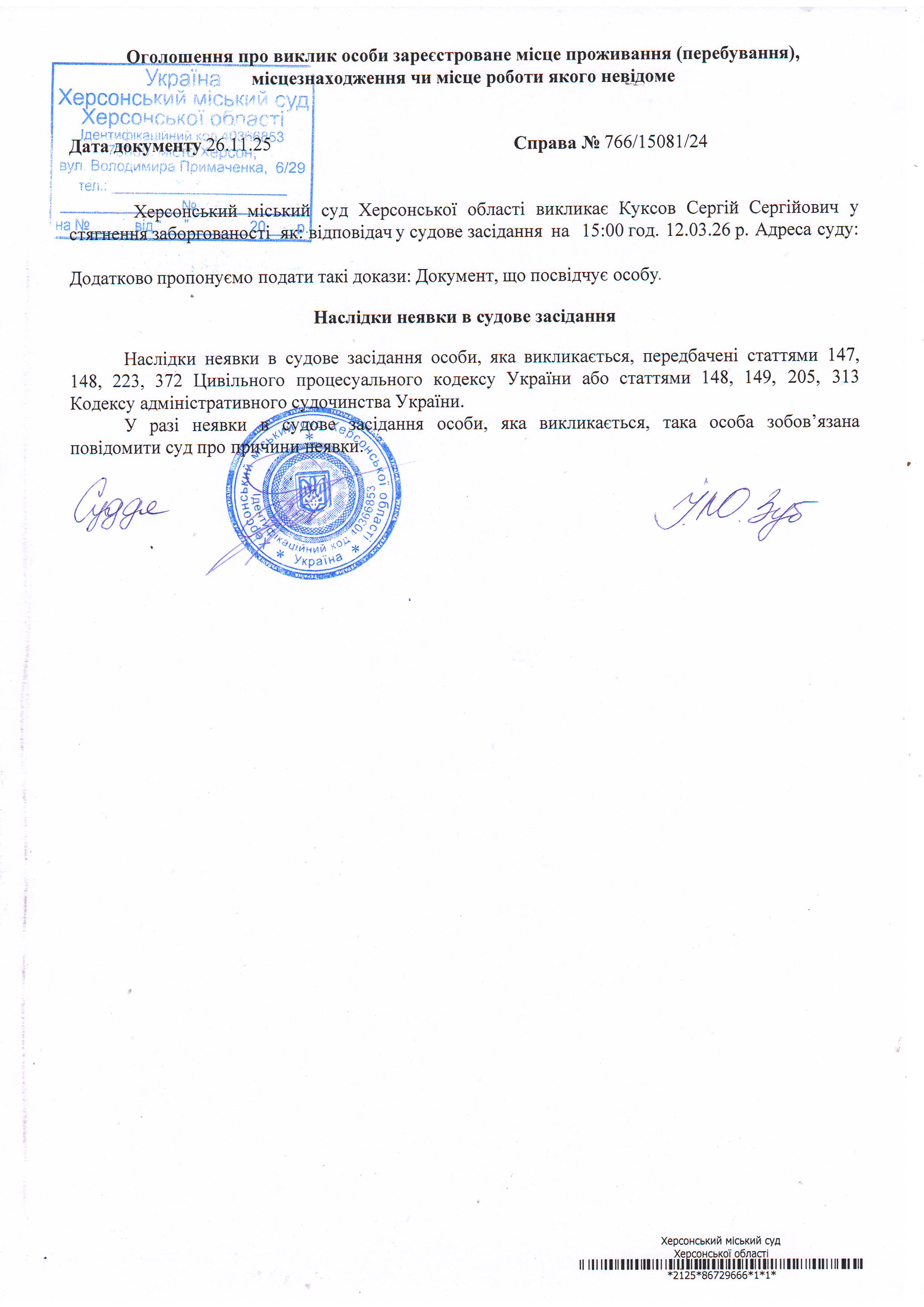 ОГОЛОШЕННЯ ПРО ВИКЛИК ДО СУДУ