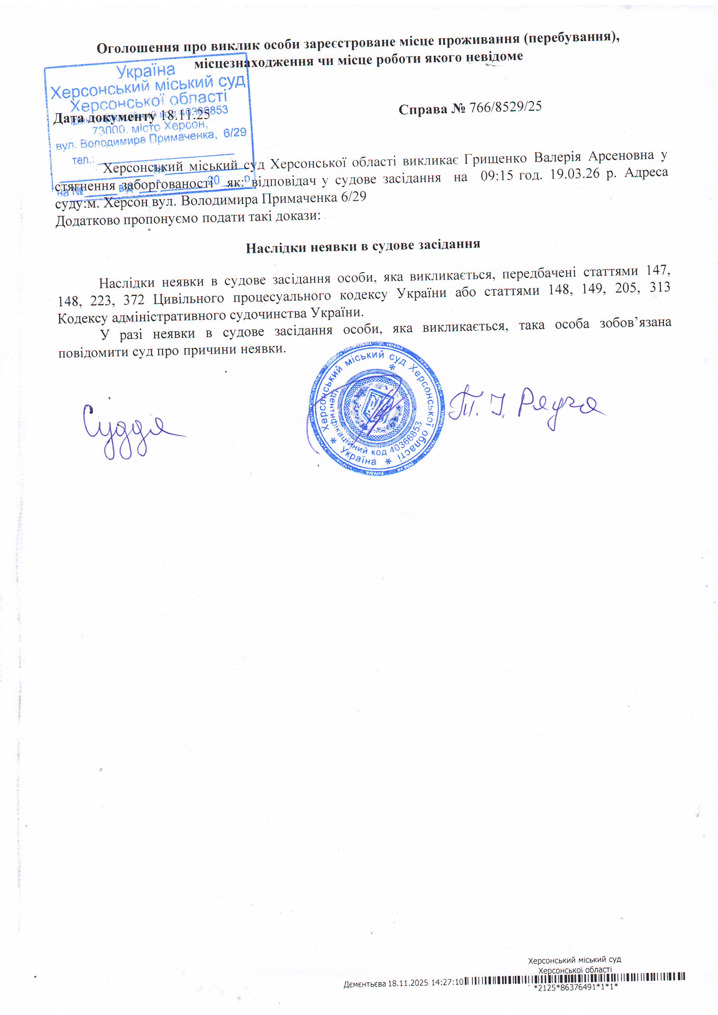 ОГОЛОШЕННЯ ПРО ВИКЛИК ДО СУДУ