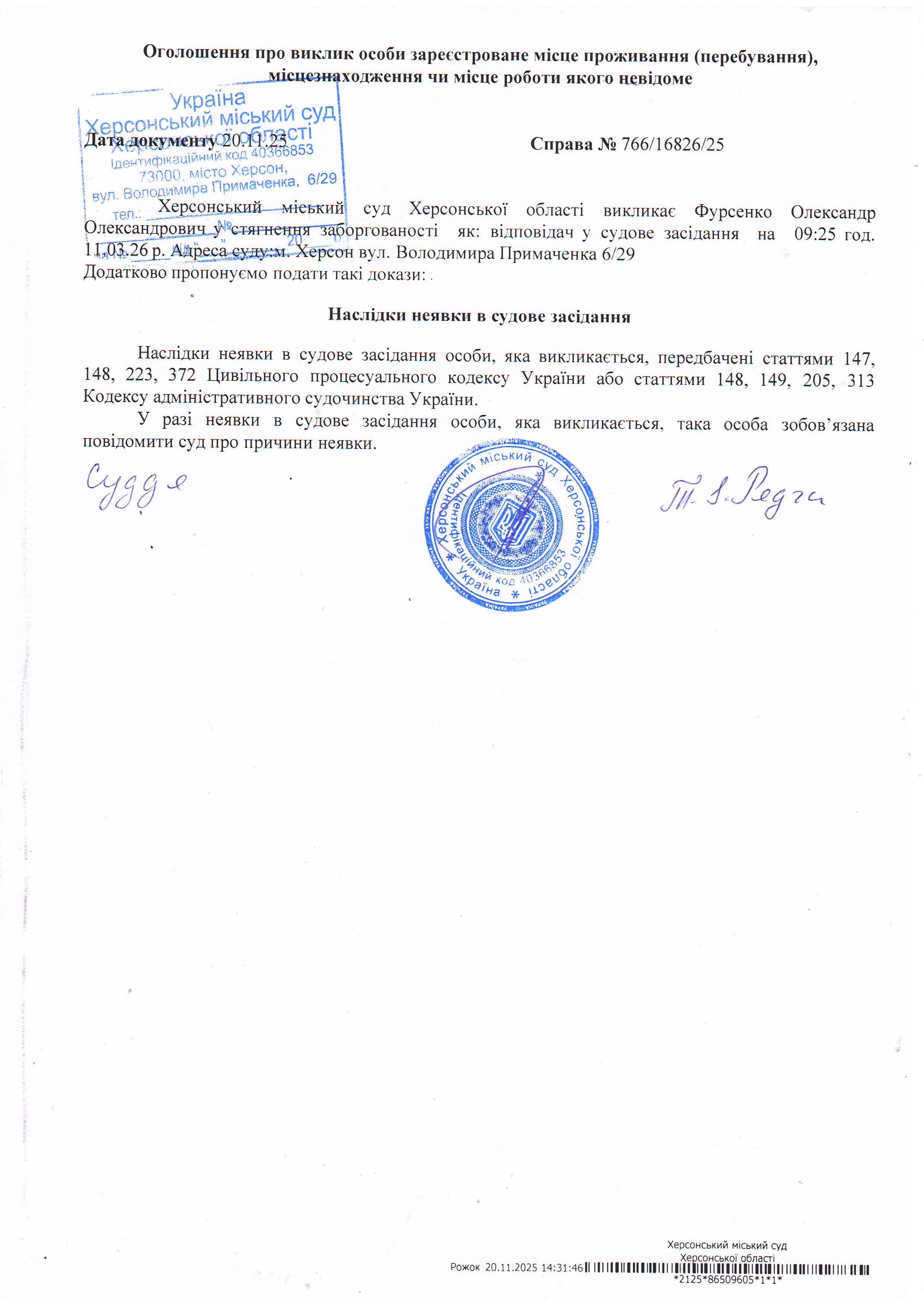 ОГОЛОШЕННЯ ПРО ВИКЛИК ДО СУДУ