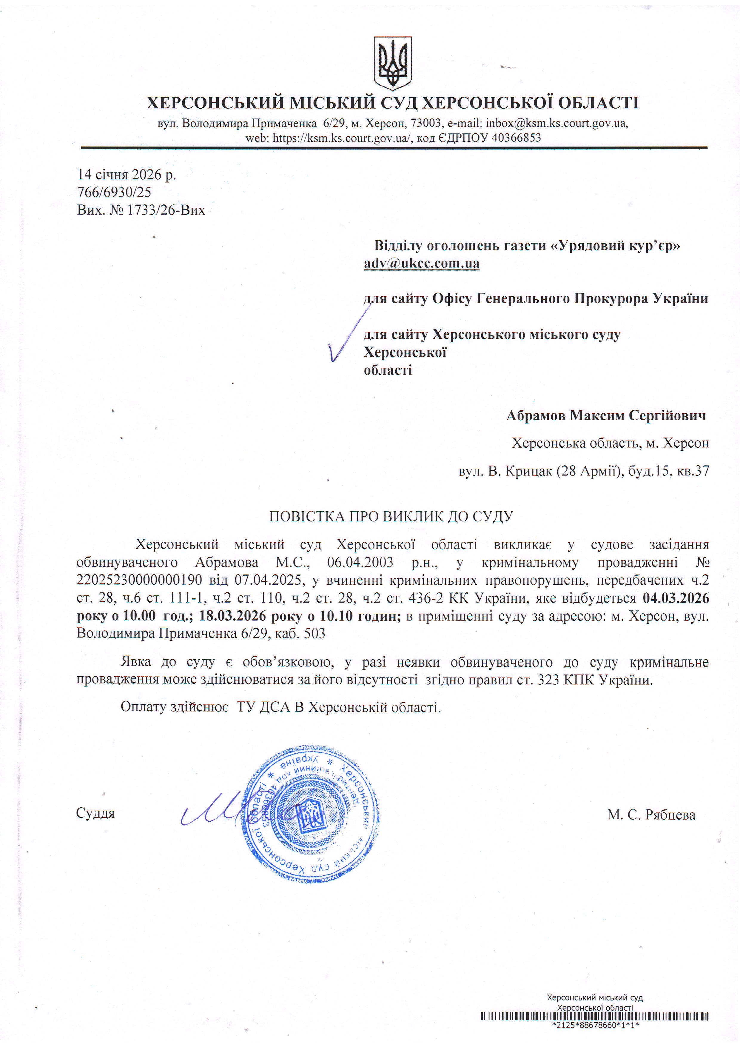 ОГОЛОШЕННЯ ПРО ВИКЛИК ДО СУДУ