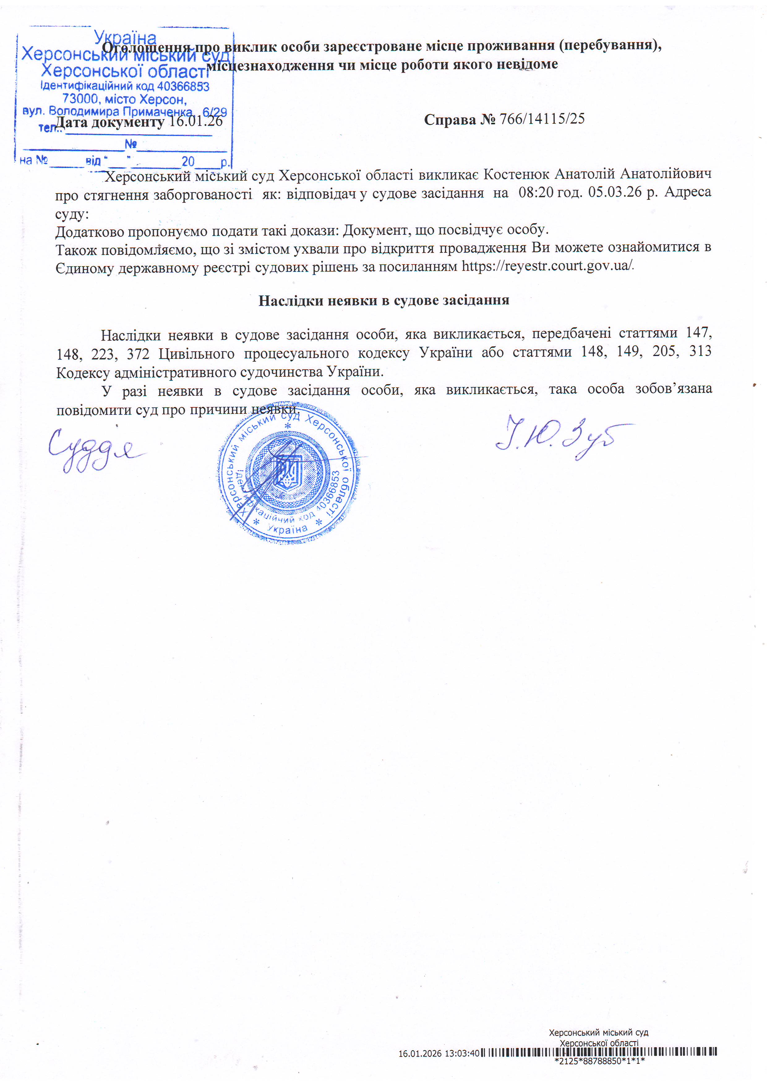 ОГОЛОШЕННЯ ПРО ВИКЛИК ДО СУДУ