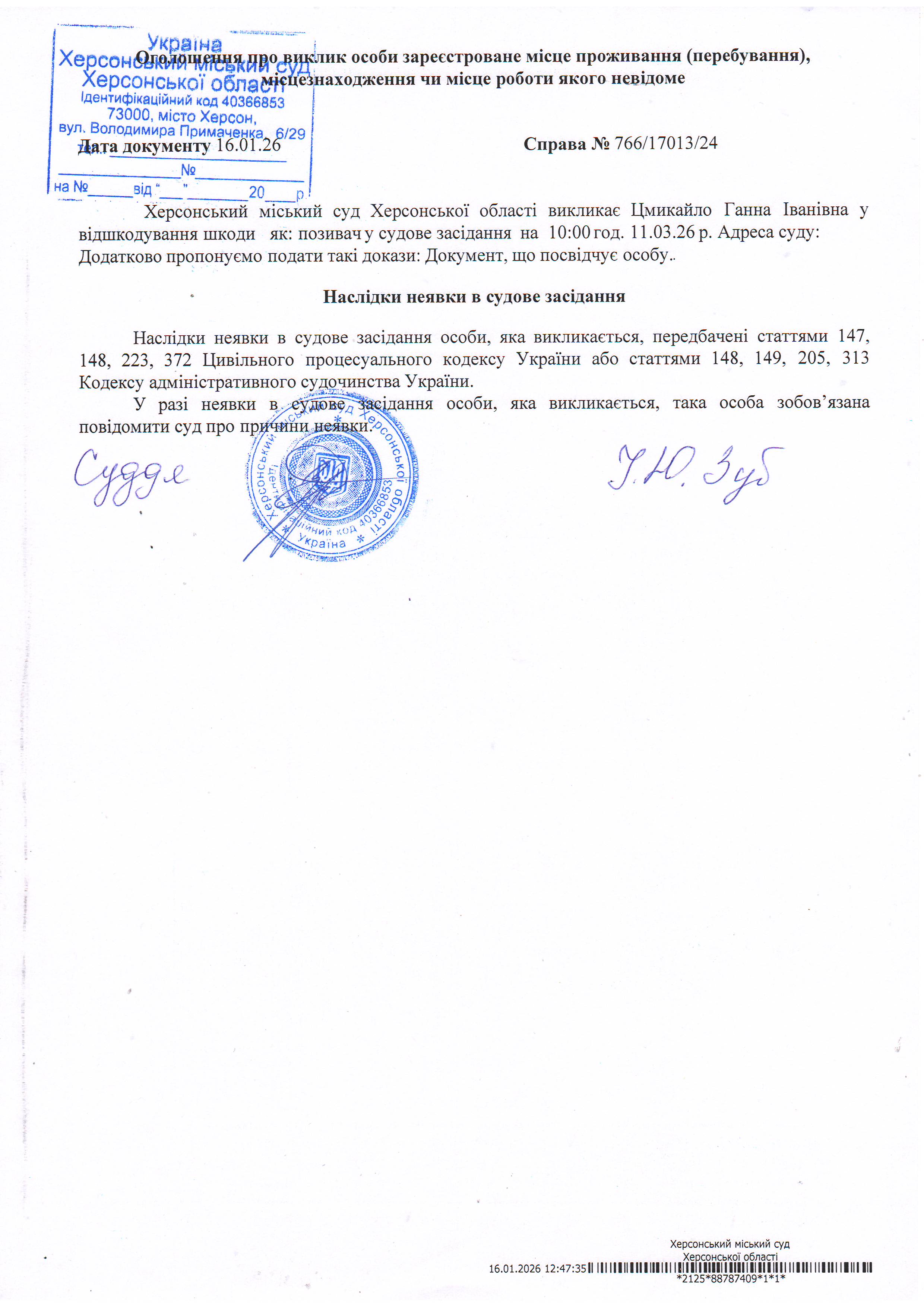 ОГОЛОШЕННЯ ПРО ВИКЛИК ДО СУДУ