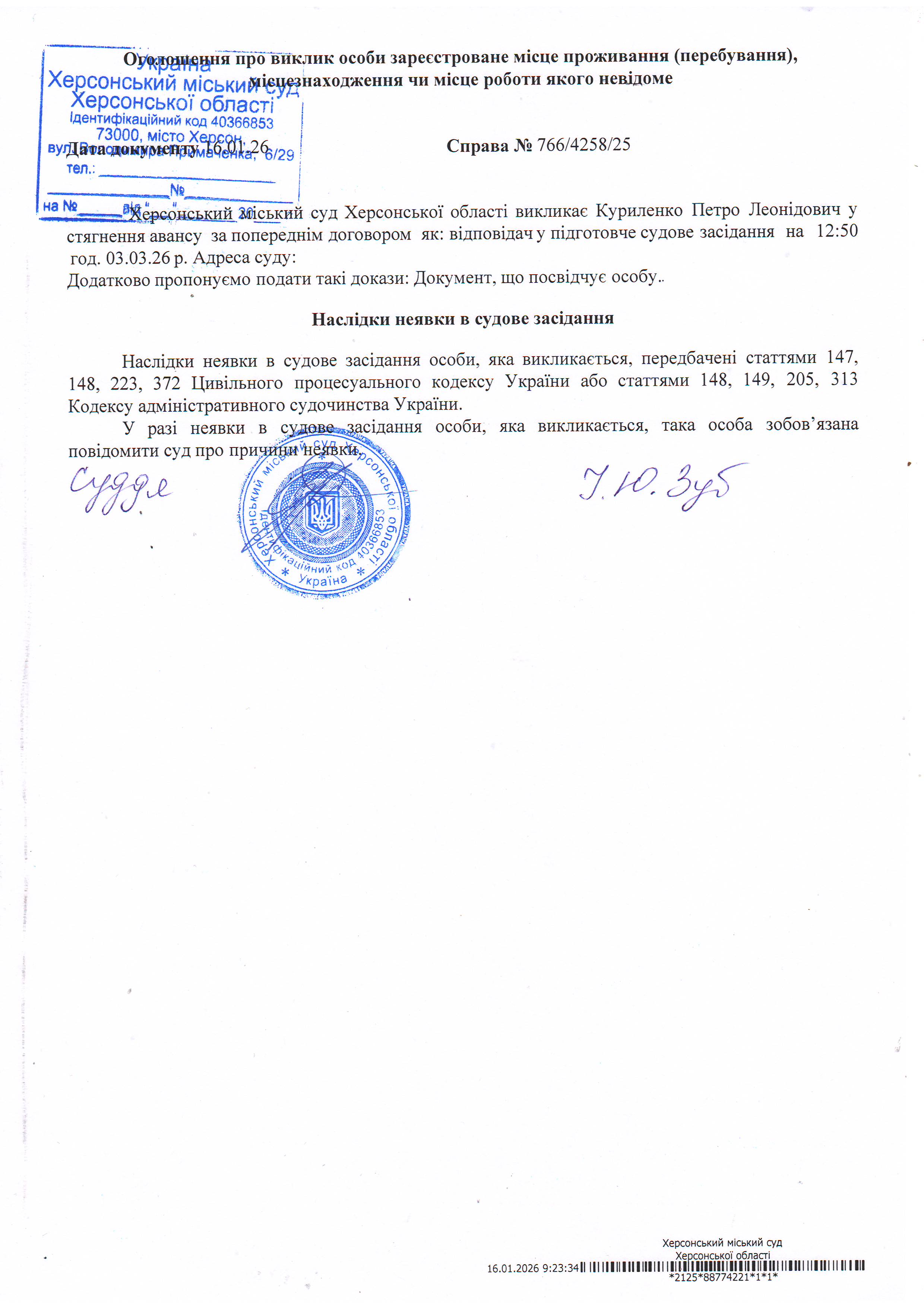 ОГОЛОШЕННЯ ПРО ВИКЛИК ДО СУДУ