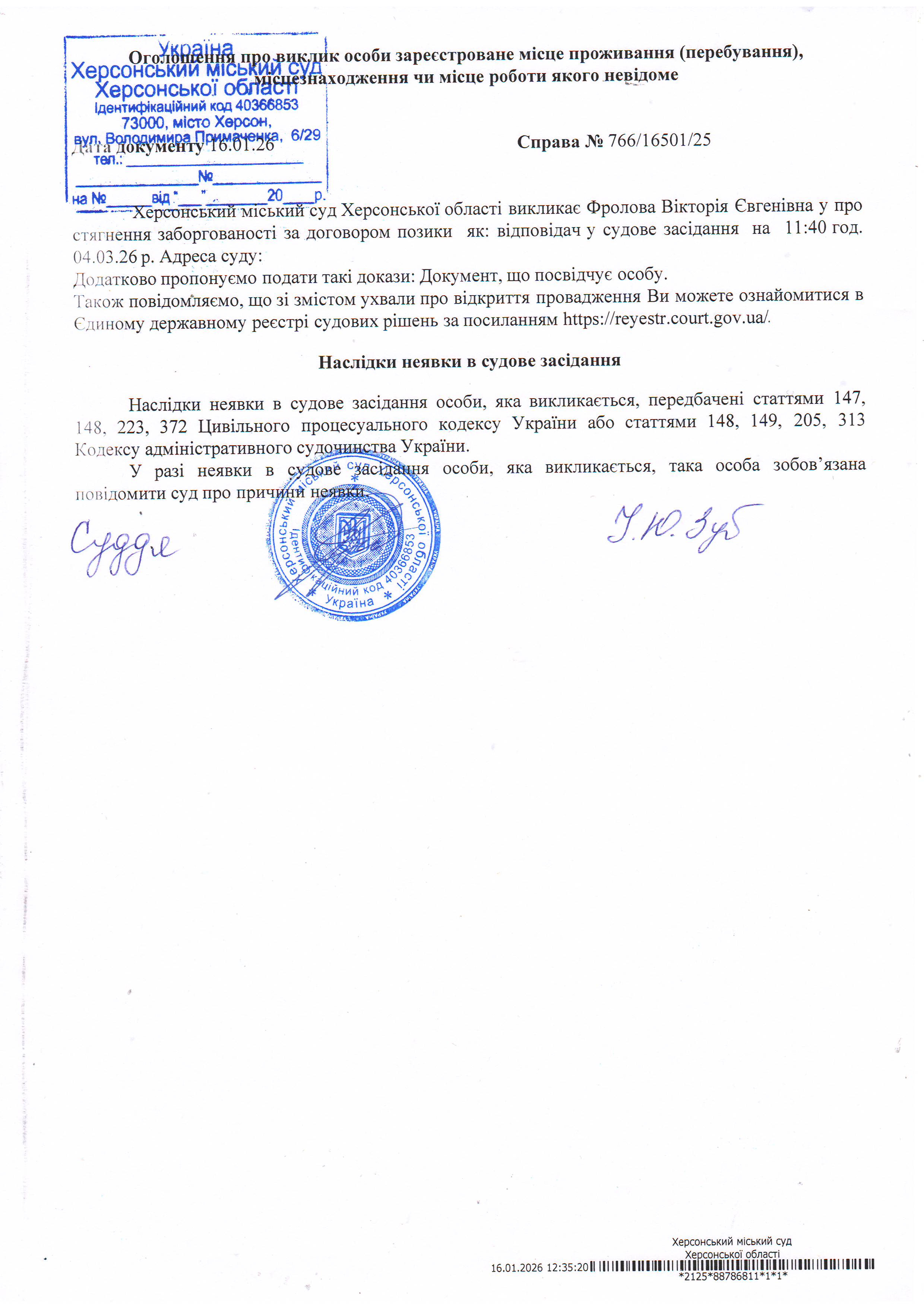 ОГОЛОШЕННЯ ПРО ВИКЛИК ДО СУДУ