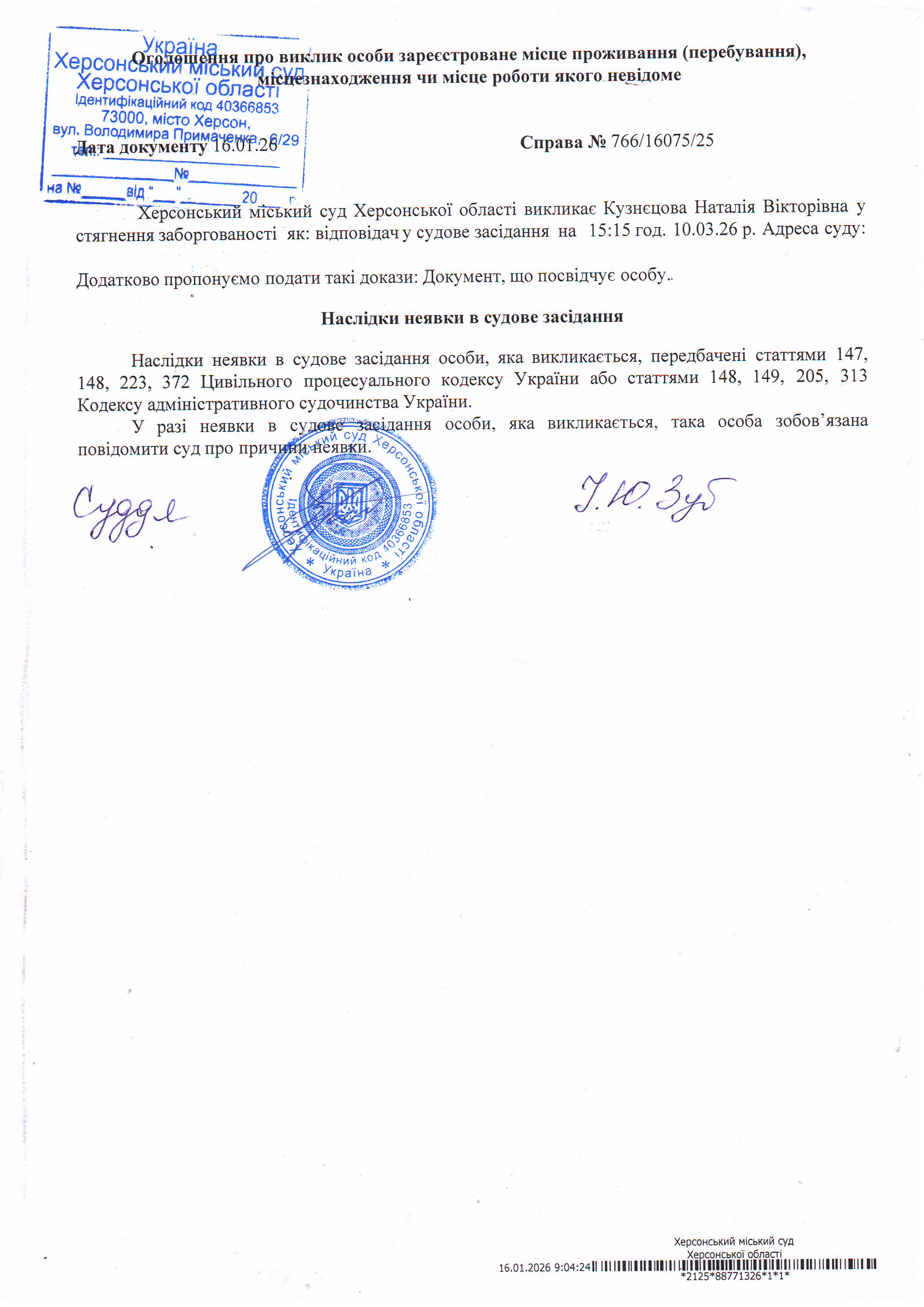 ОГОЛОШЕННЯ ПРО ВИКЛИК ДО СУДУ