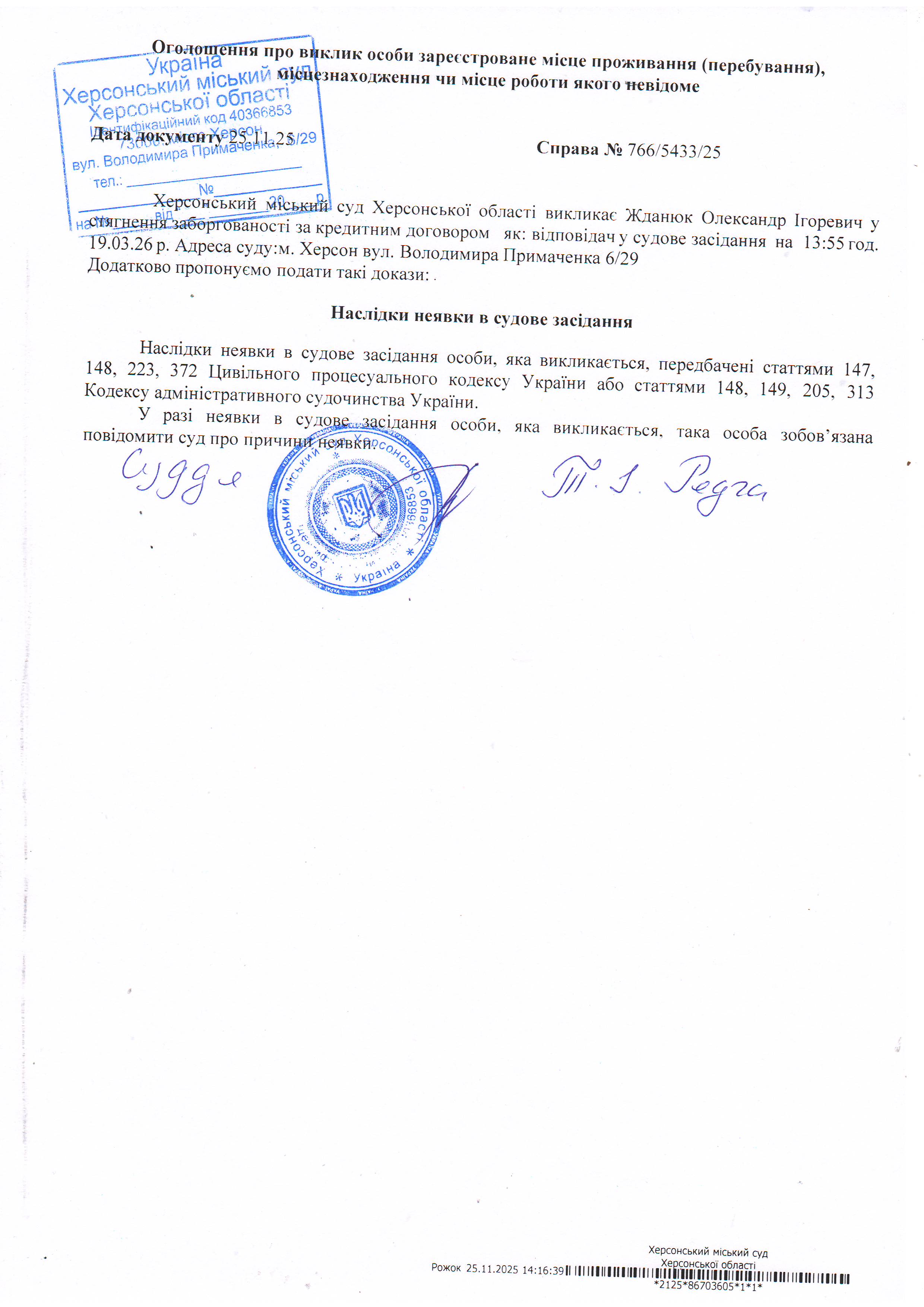ОГОЛОШЕННЯ ПРО ВИКЛИК ДО СУДУ