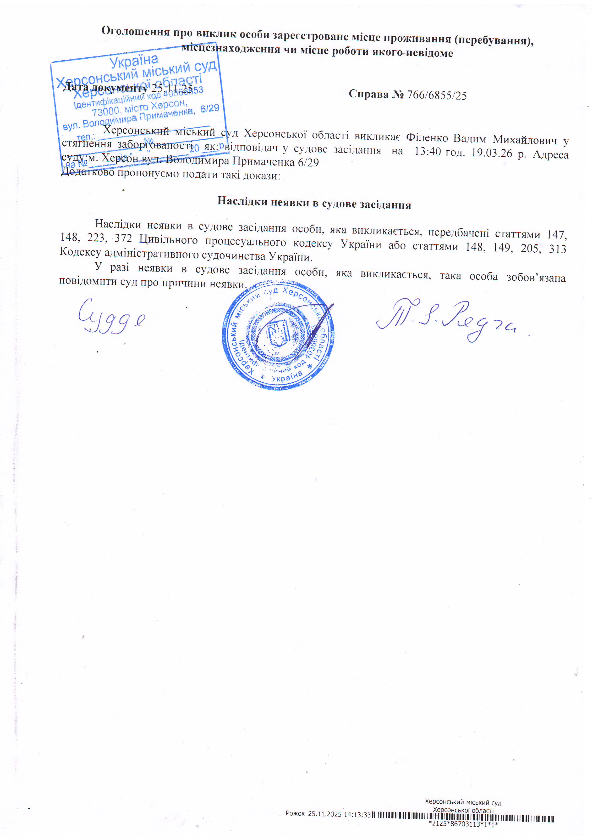 ОГОЛОШЕННЯ ПРО ВИКЛИК ДО СУДУ