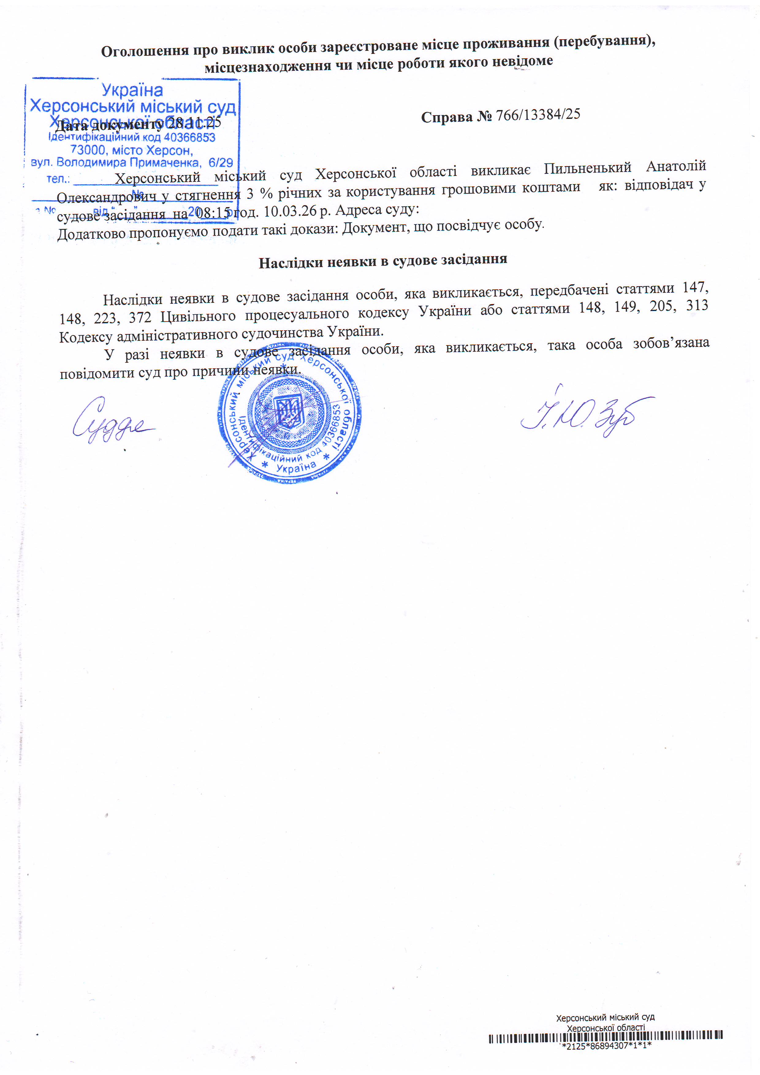 ОГОЛОШЕННЯ ПРО ВИКЛИК ДО СУДУ
