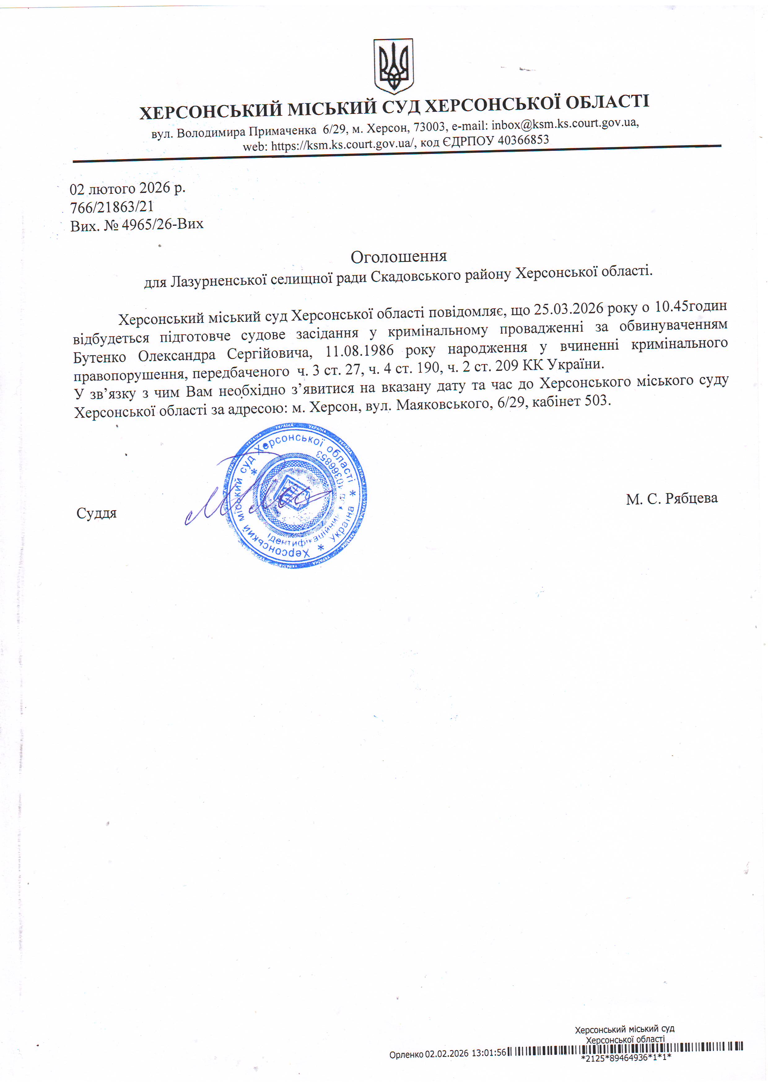 ОГОЛОШЕННЯ ПРО ВИКЛИК ДО СУДУ