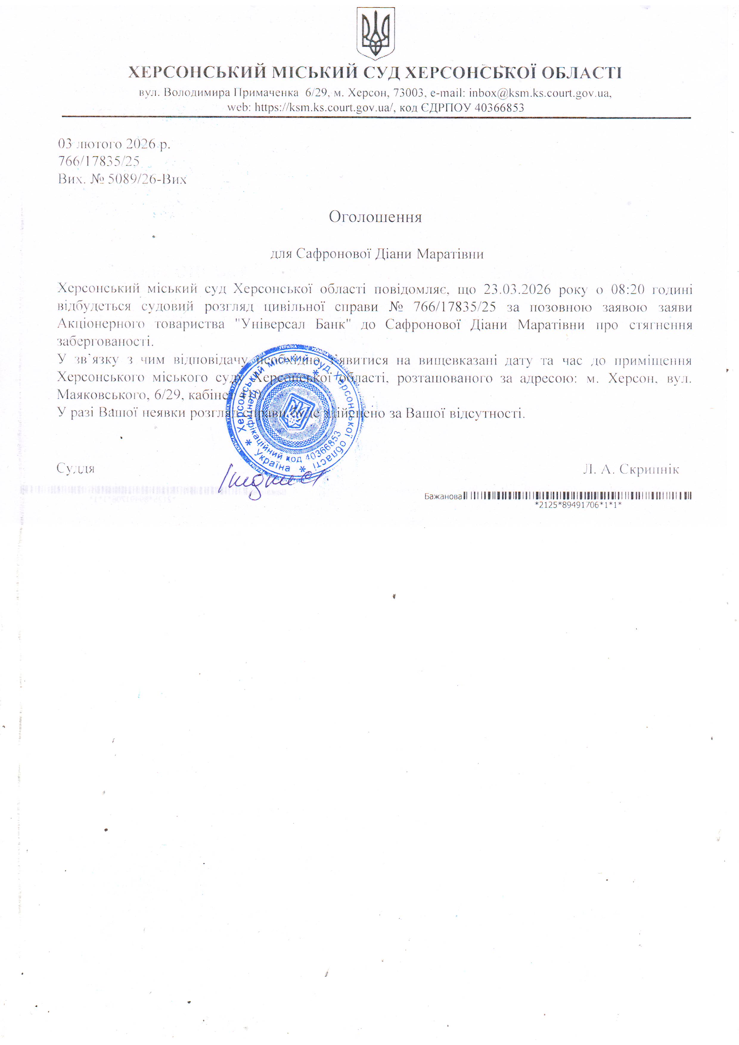 ОГОЛОШЕННЯ ПРО ВИКЛИК ДО СУДУ