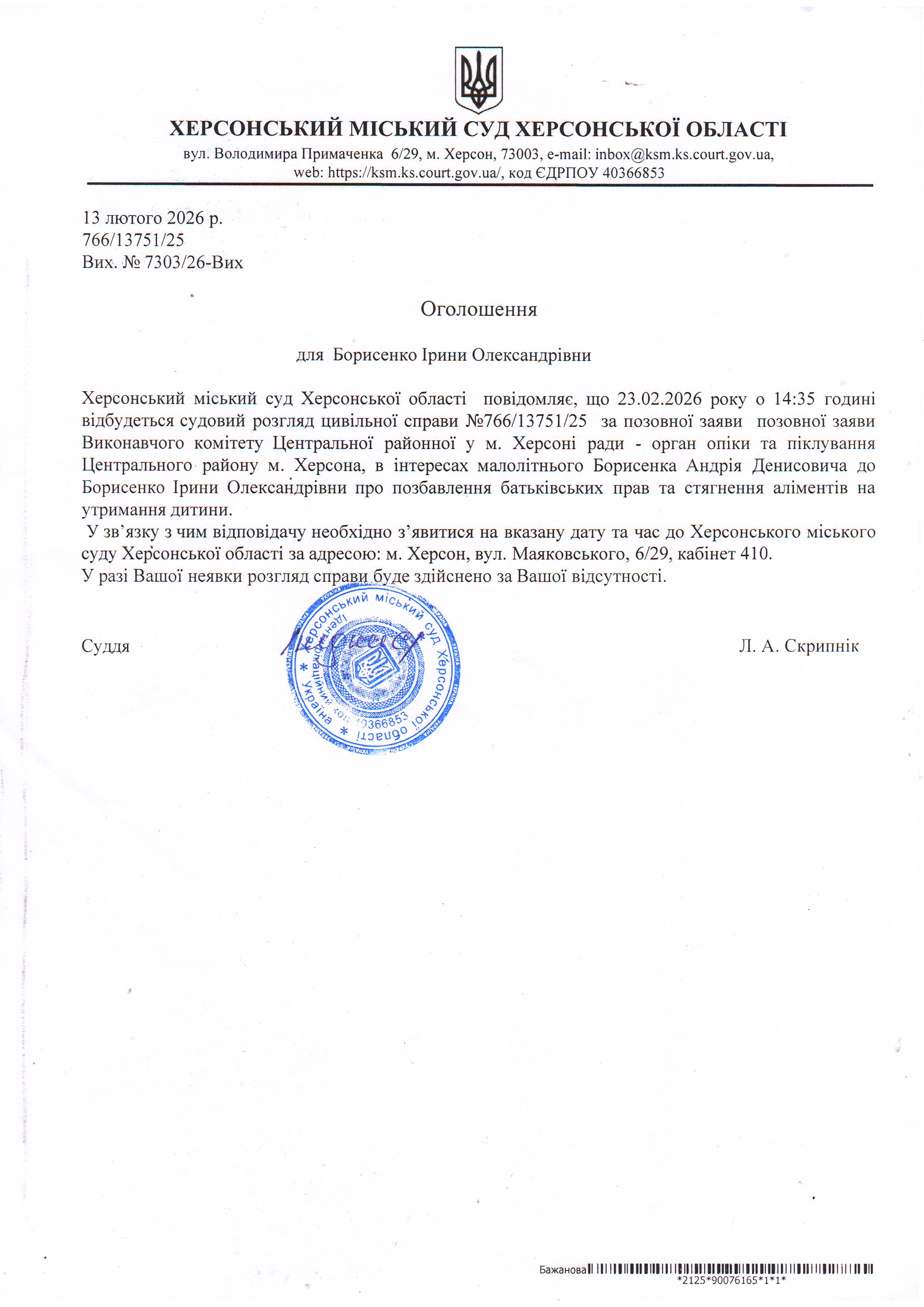 ОГОЛОШЕННЯ ПРО ВИКЛИК ДО СУДУ