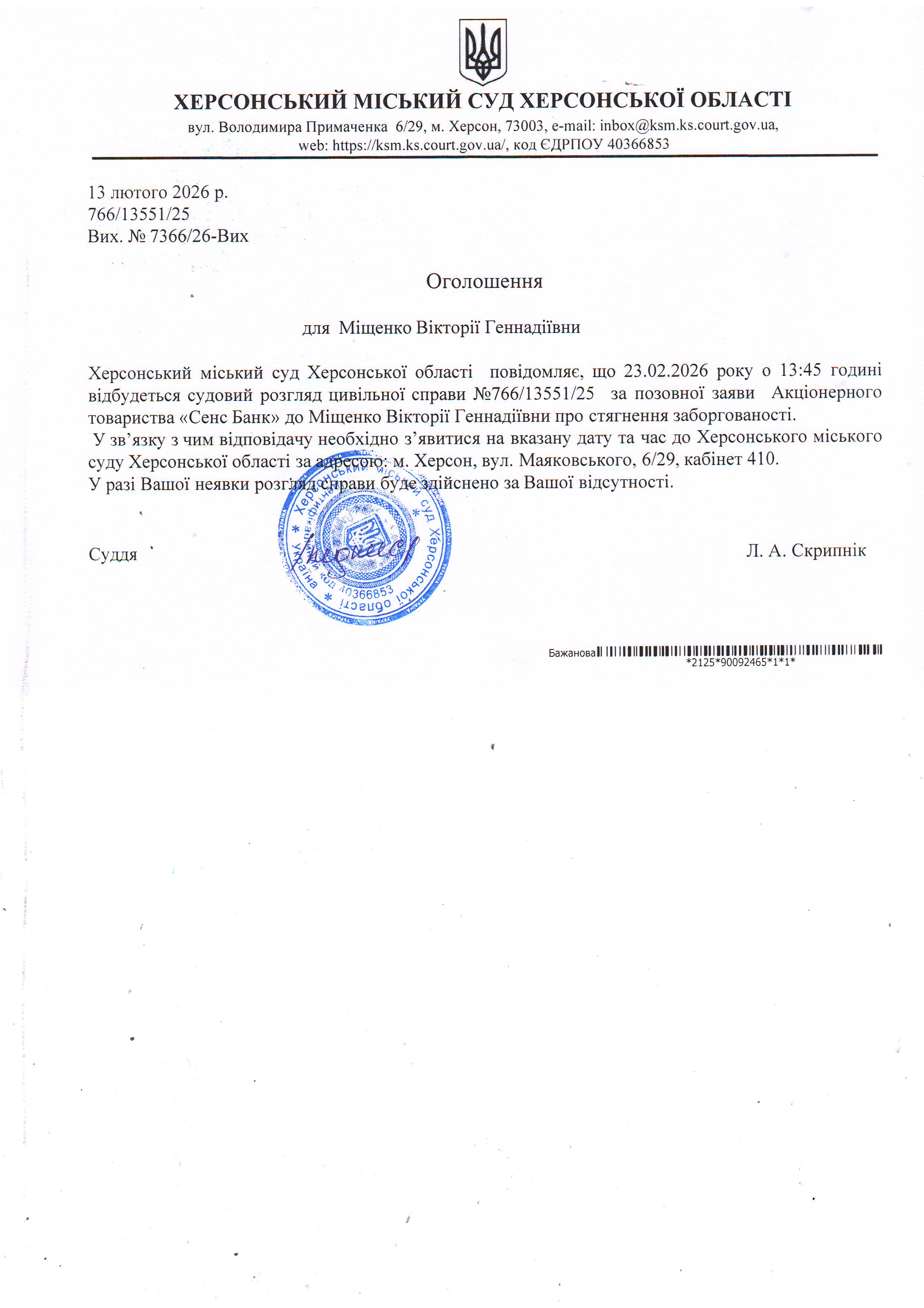 ОГОЛОШЕННЯ ПРО ВИКЛИК ДО СУДУ