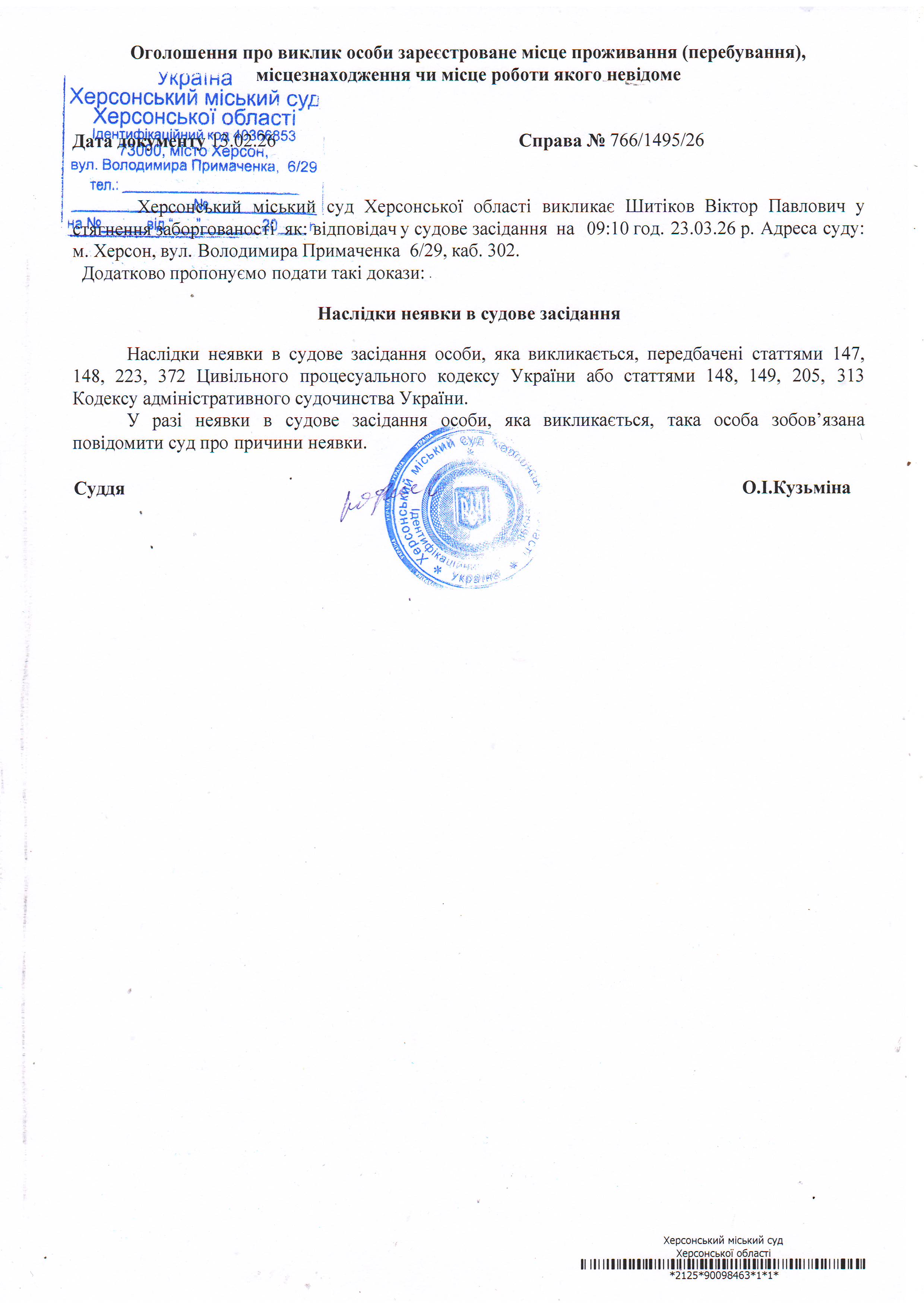 ОГОЛОШЕННЯ ПРО ВИКЛИК ДО СУДУ
