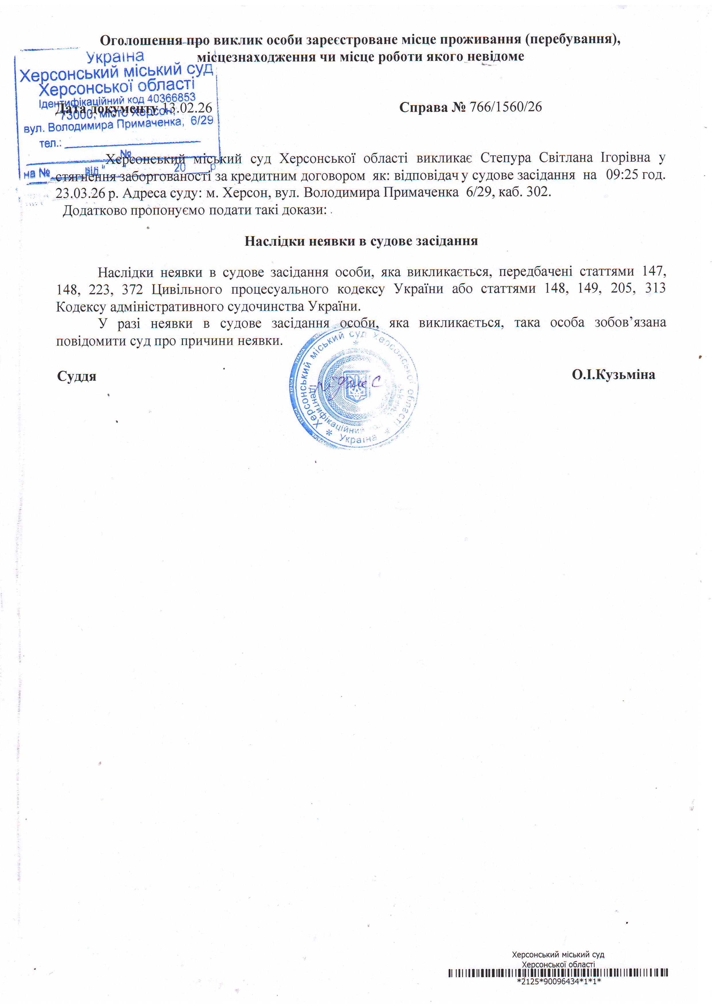 ОГОЛОШЕННЯ ПРО ВИКЛИК ДО СУДУ