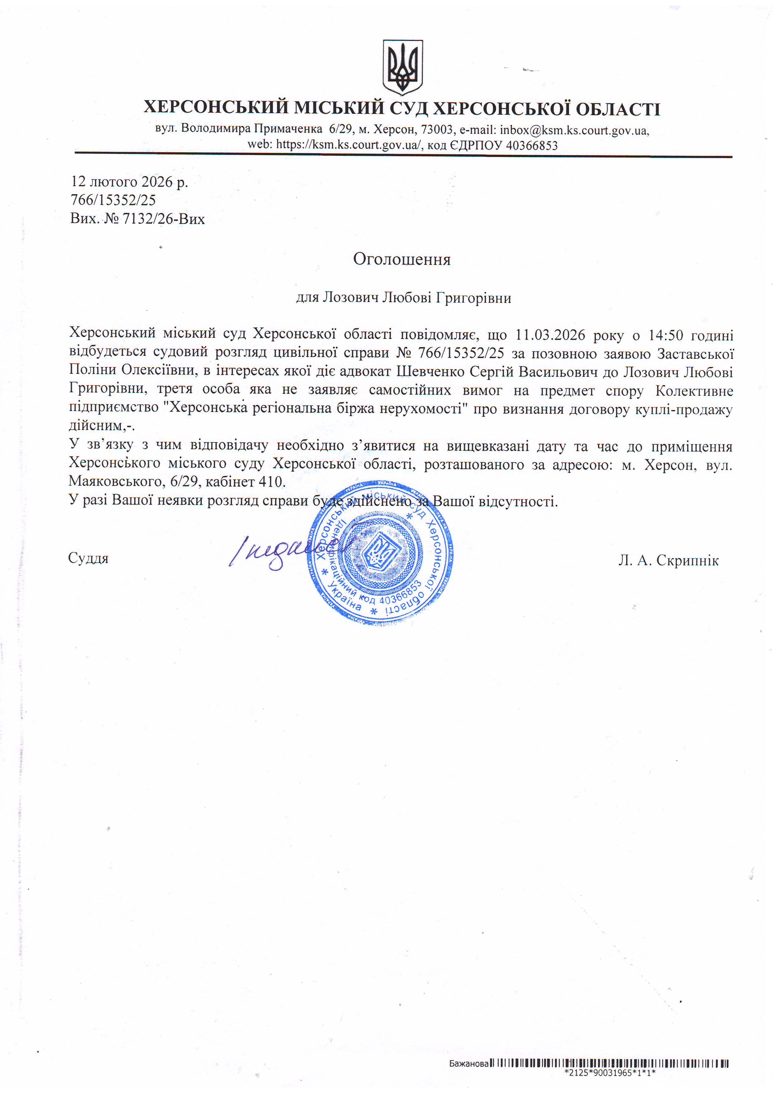 ОГОЛОШЕННЯ ПРО ВИКЛИК ДО СУДУ