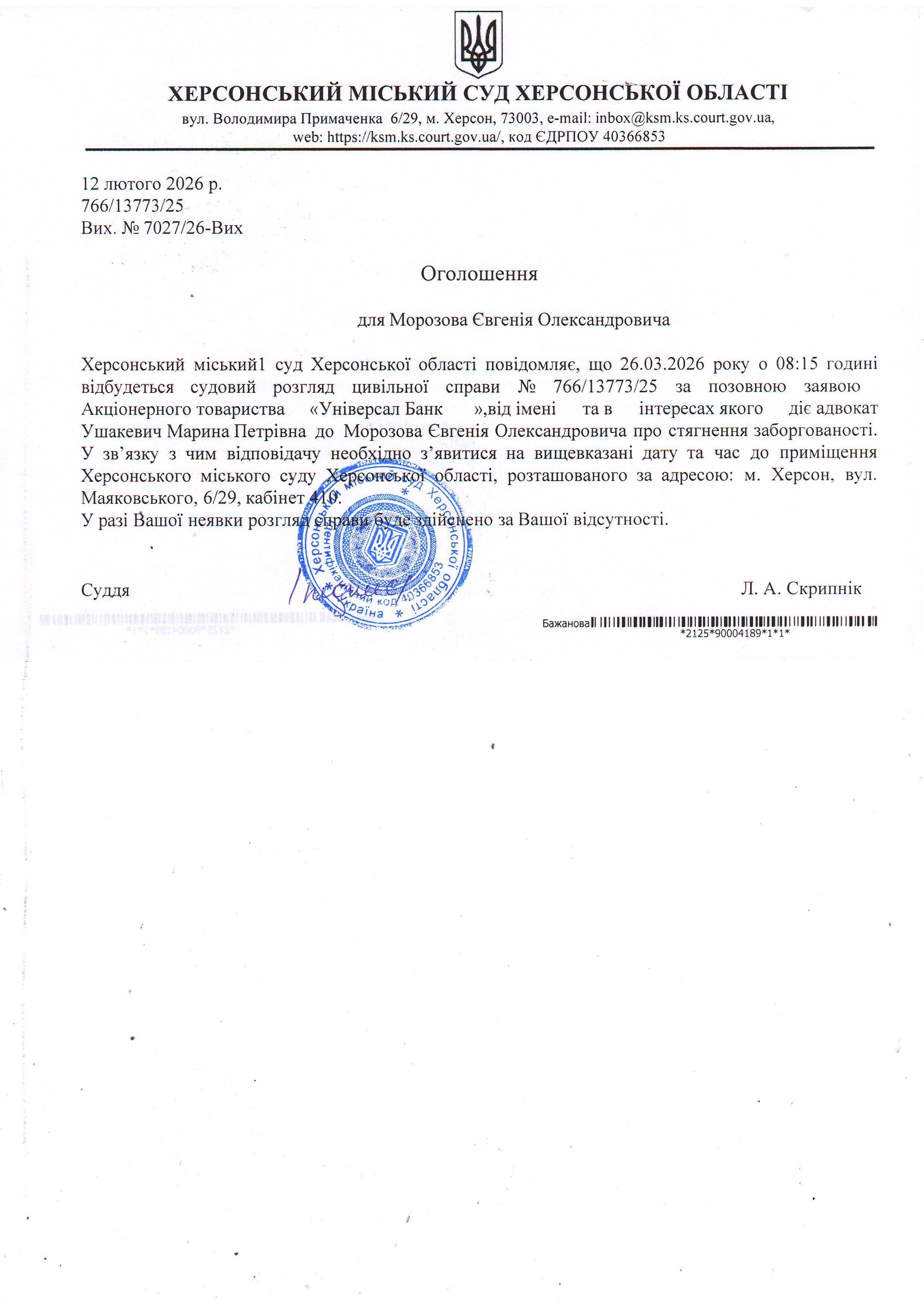 ОГОЛОШЕННЯ ПРО ВИКЛИК ДО СУДУ