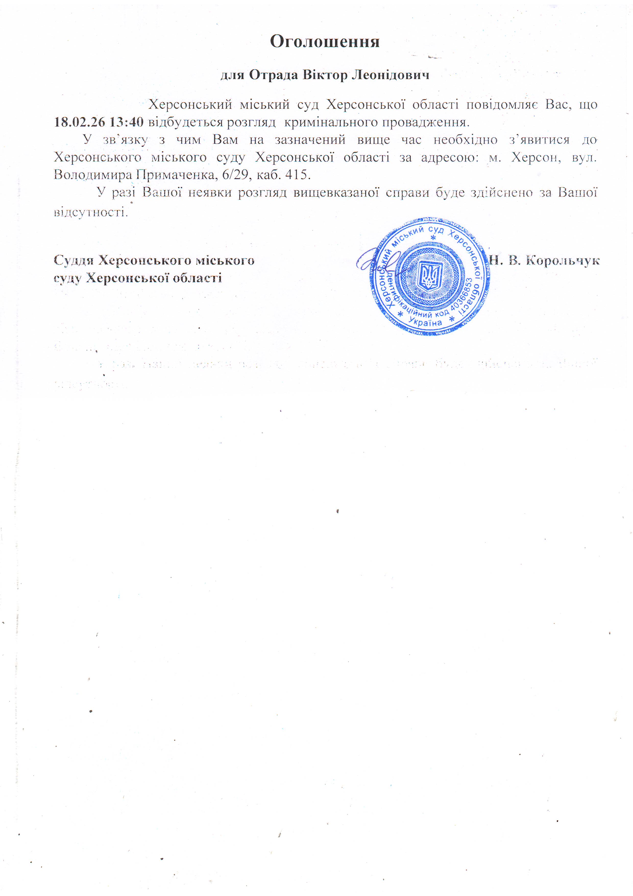 Оголошення про виклик особи в суд та повідомлення про судове рішення