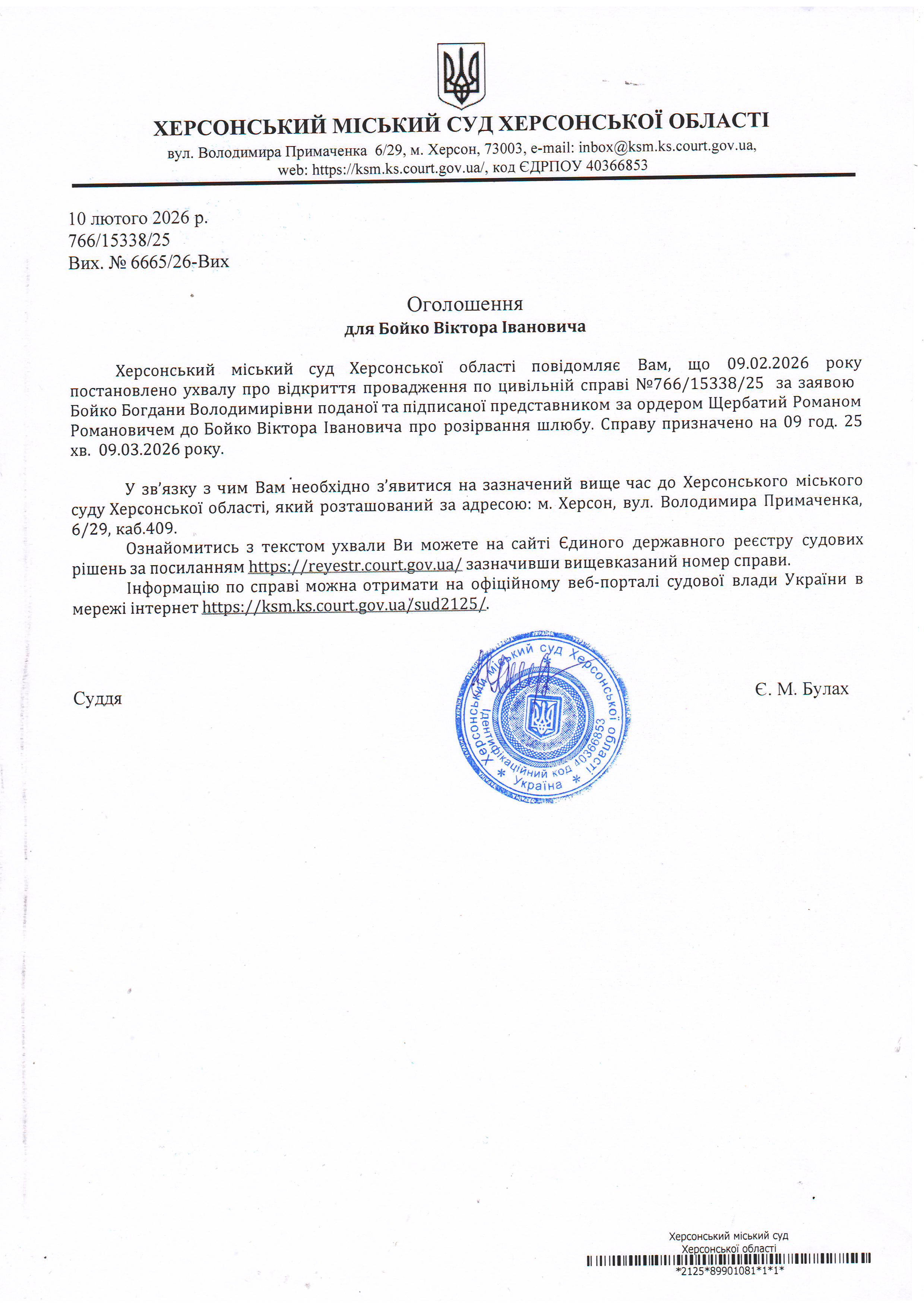 ОГОЛОШЕННЯ ПРО ВИКЛИК ДО СУДУ