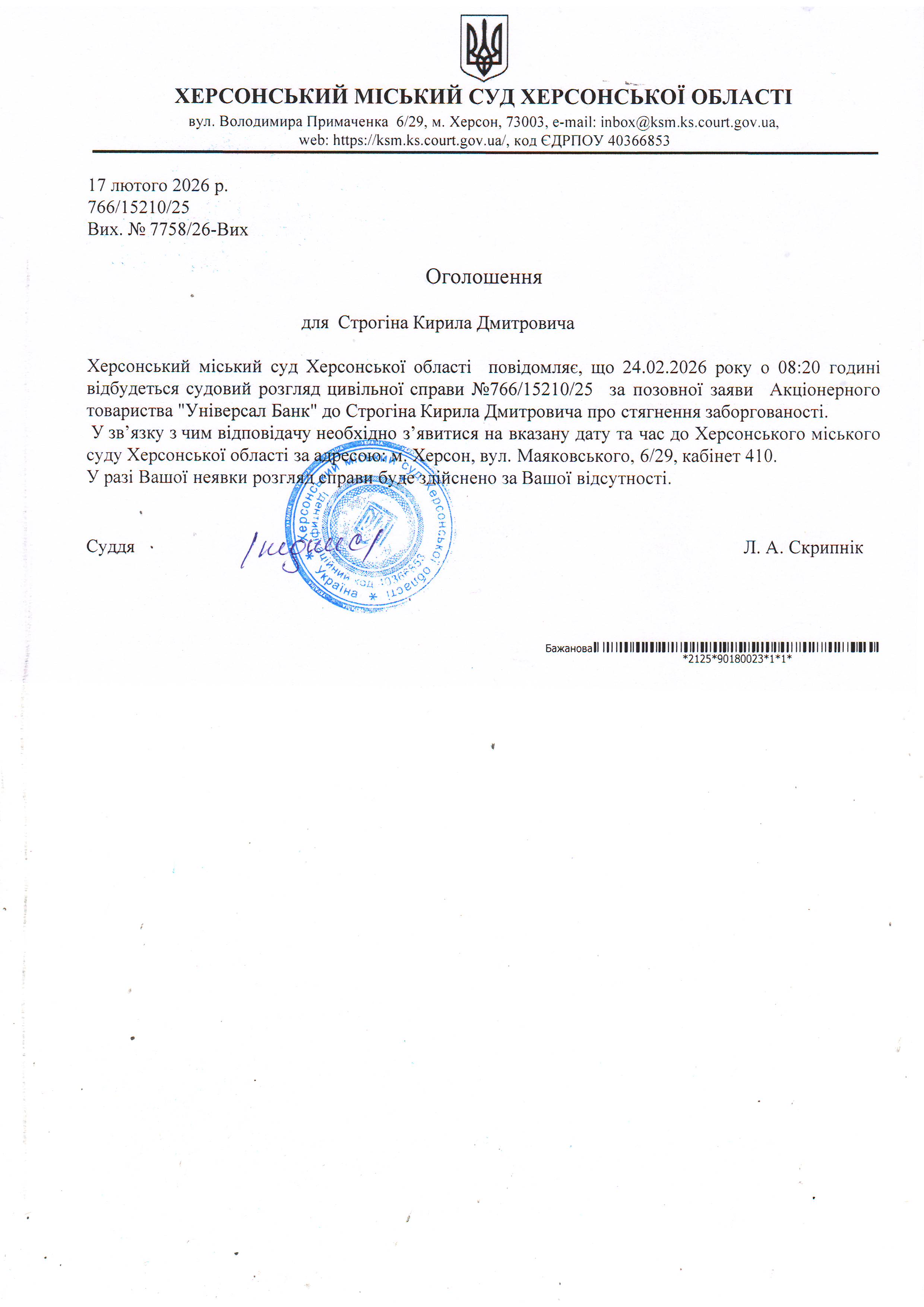 ОГОЛОШЕННЯ ПРО ВИКЛИК ДО СУДУ