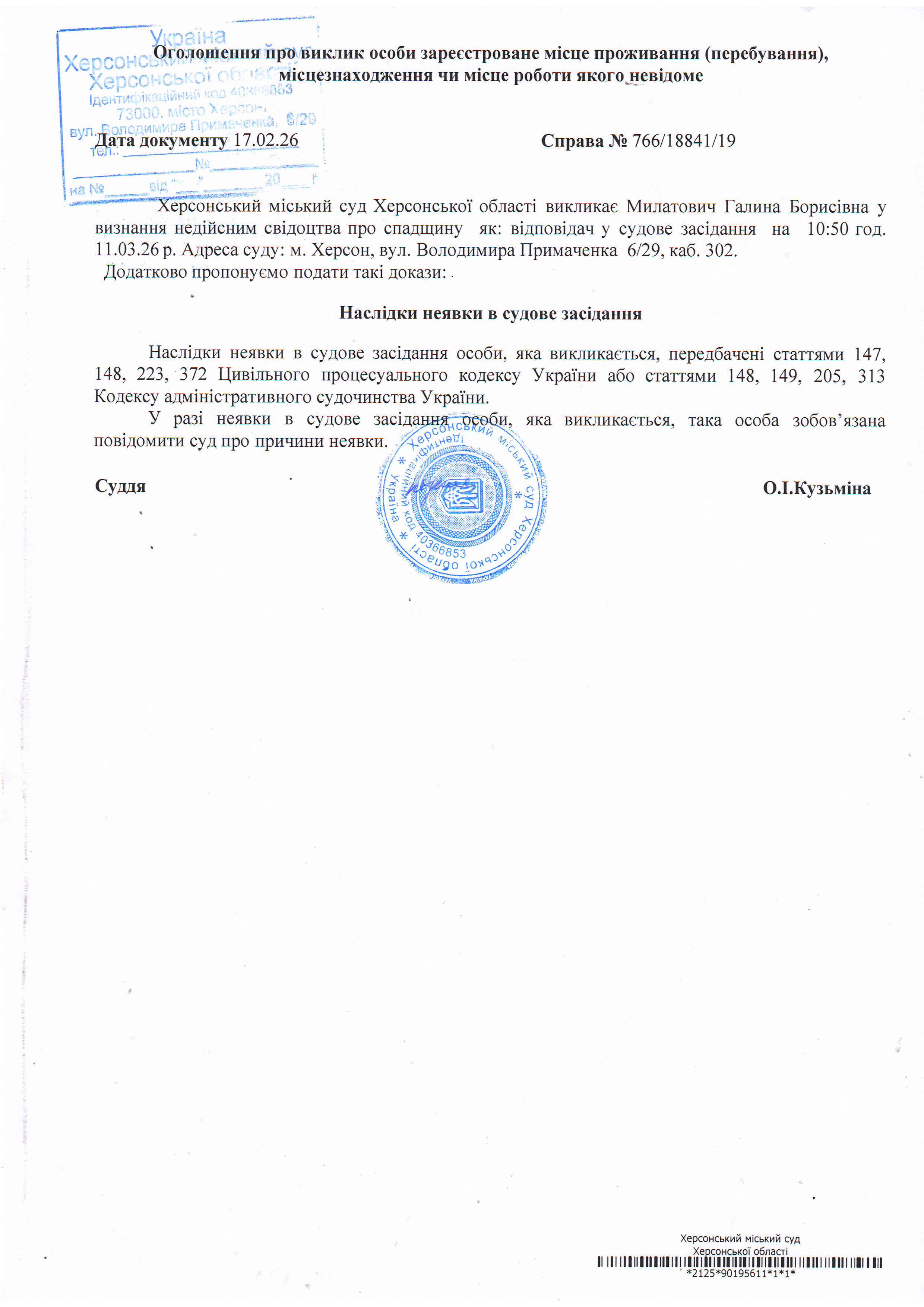 ОГОЛОШЕННЯ ПРО ВИКЛИК ДО СУДУ