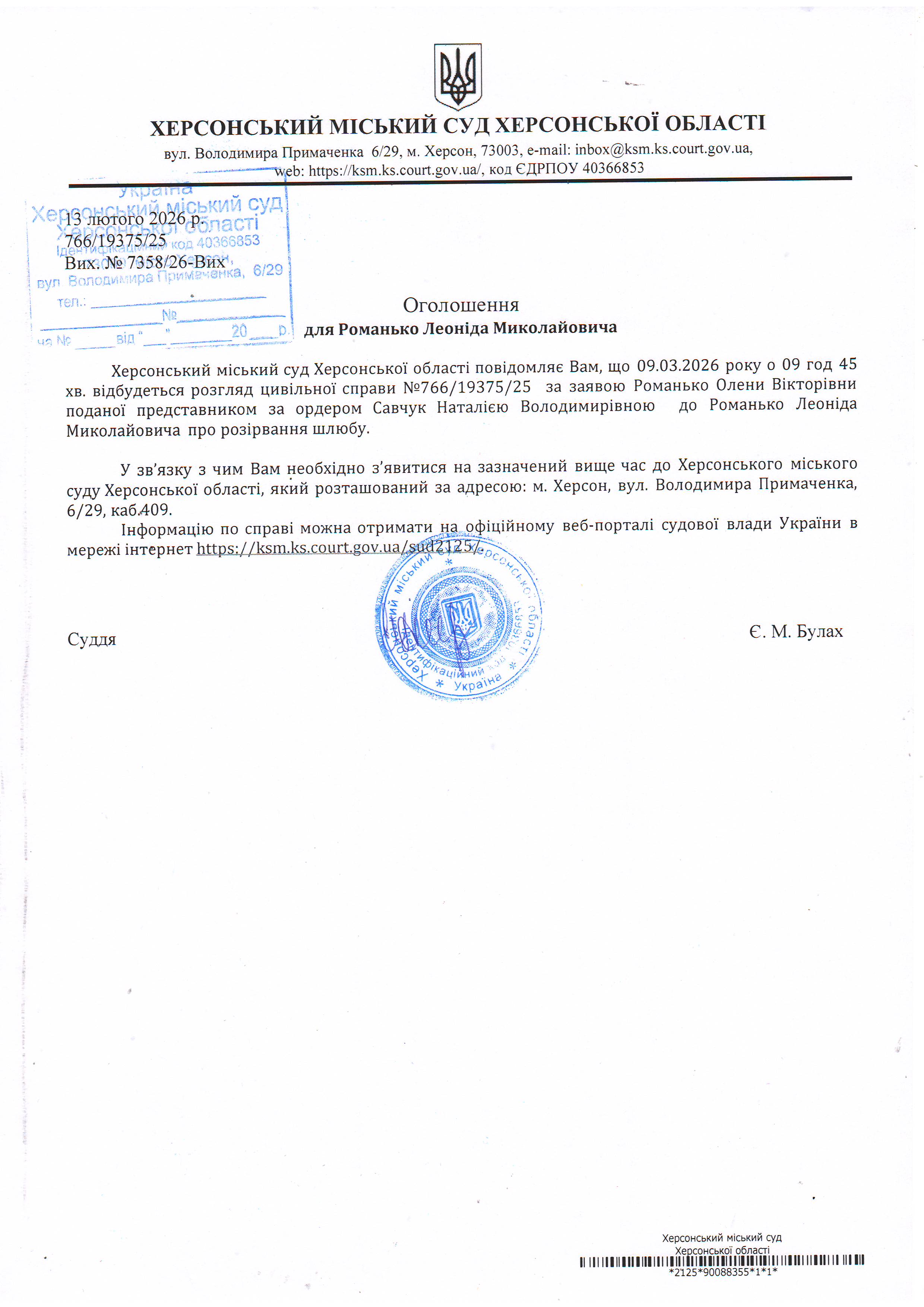 ОГОЛОШЕННЯ ПРО ВИКЛИК ДО СУДУ