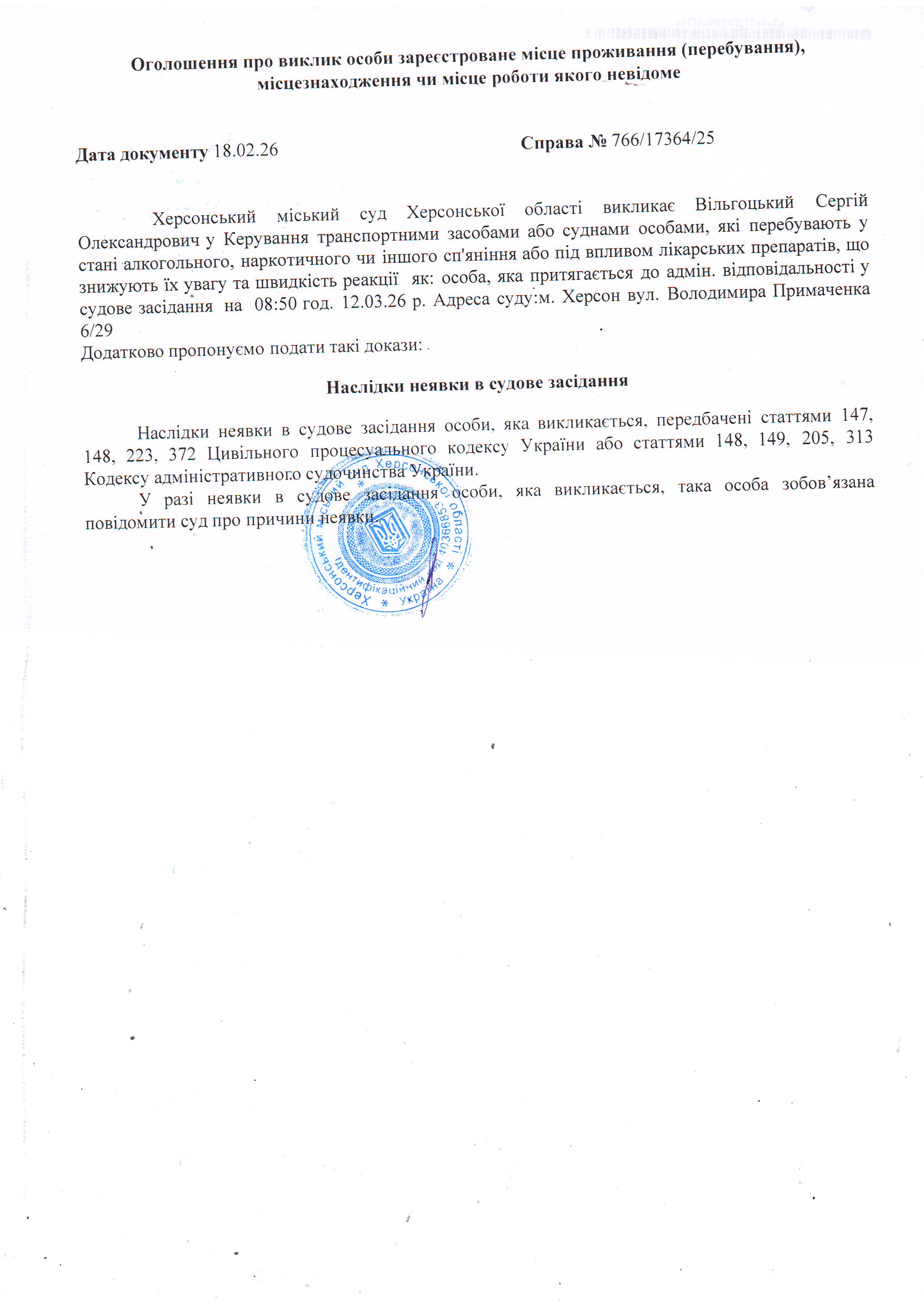 ОГОЛОШЕННЯ ПРО ВИКЛИК ДО СУДУ