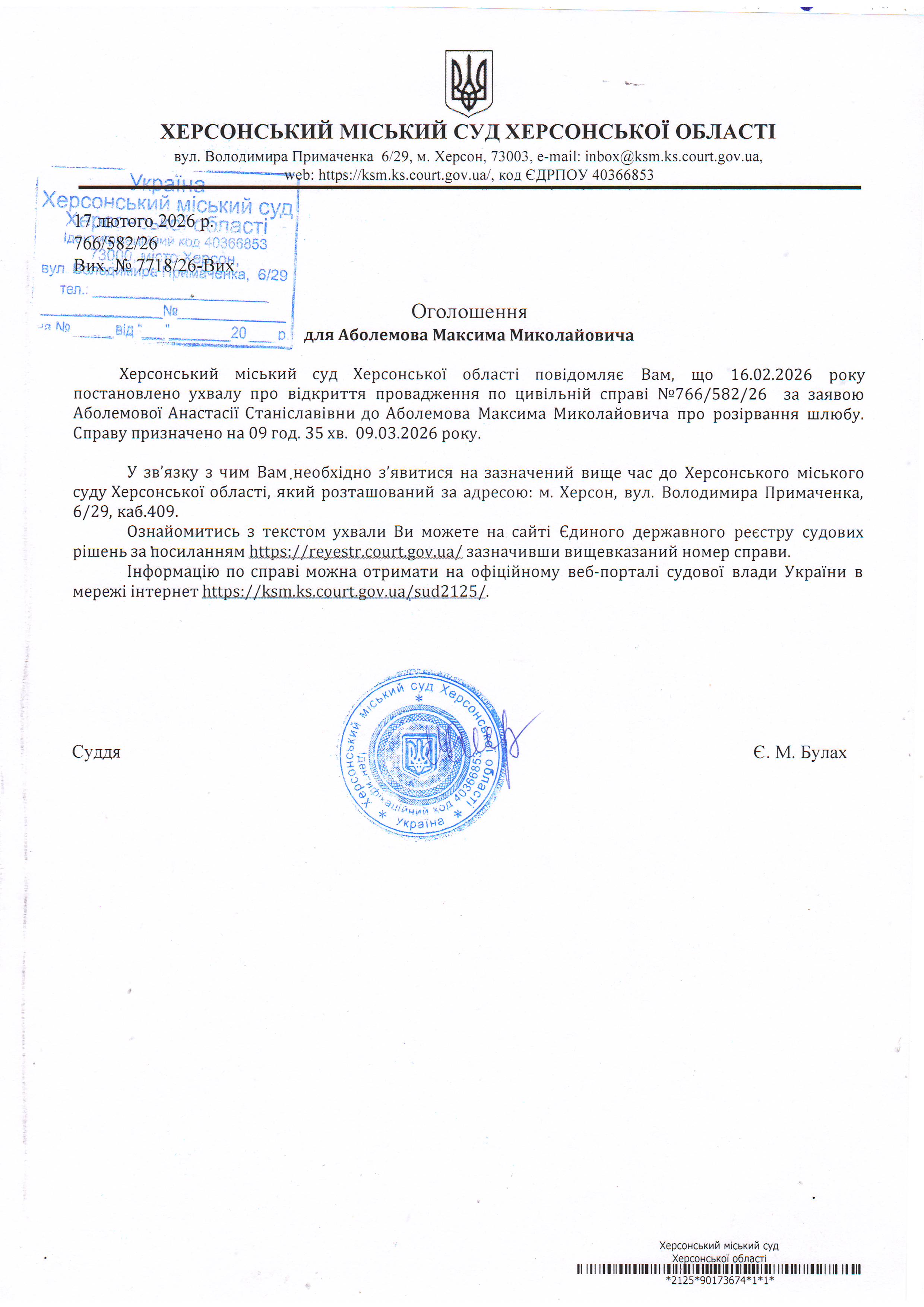 ОГОЛОШЕННЯ ПРО ВИКЛИК ДО СУДУ