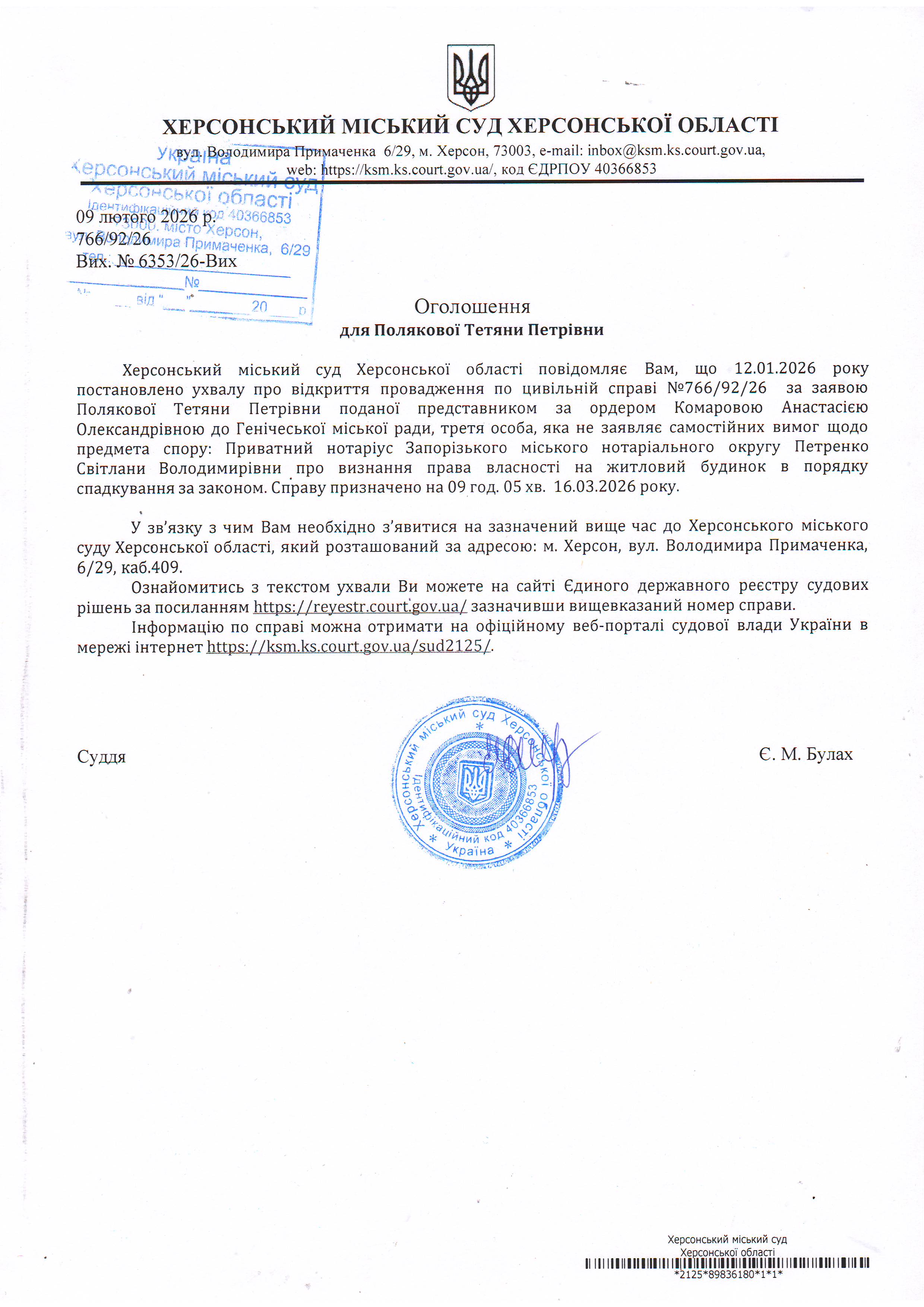 ОГОЛОШЕННЯ, УХВАЛИ ТА ЗАОЧНІ РІШЕННЯ