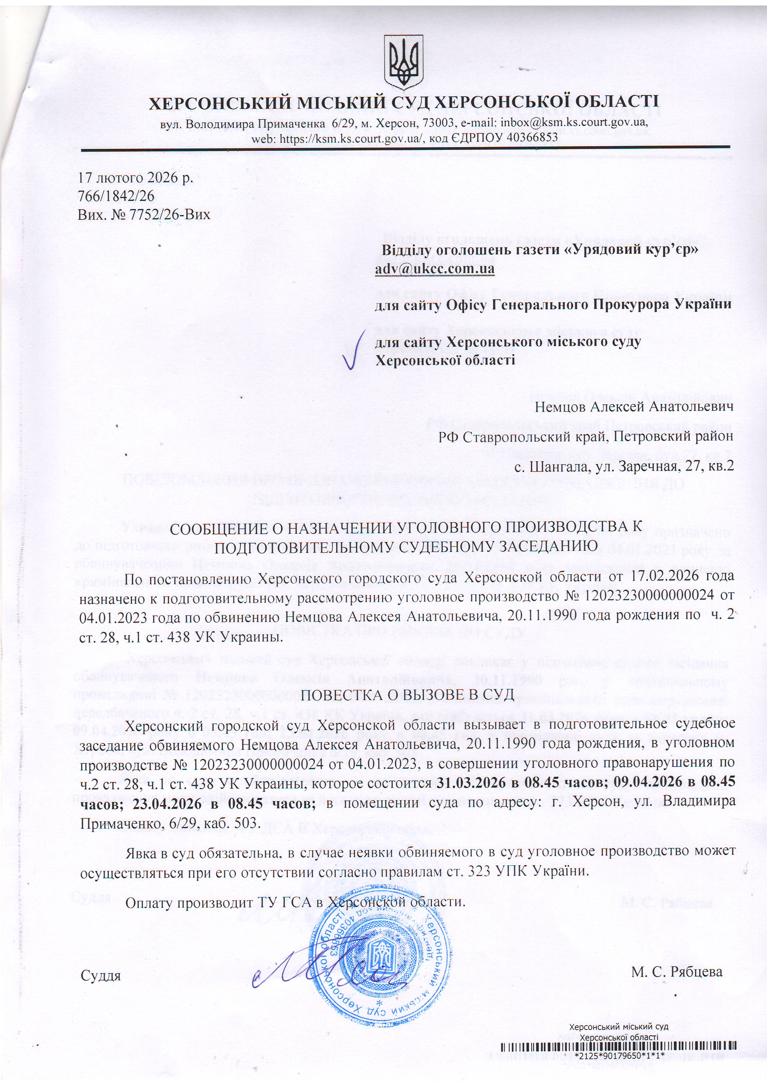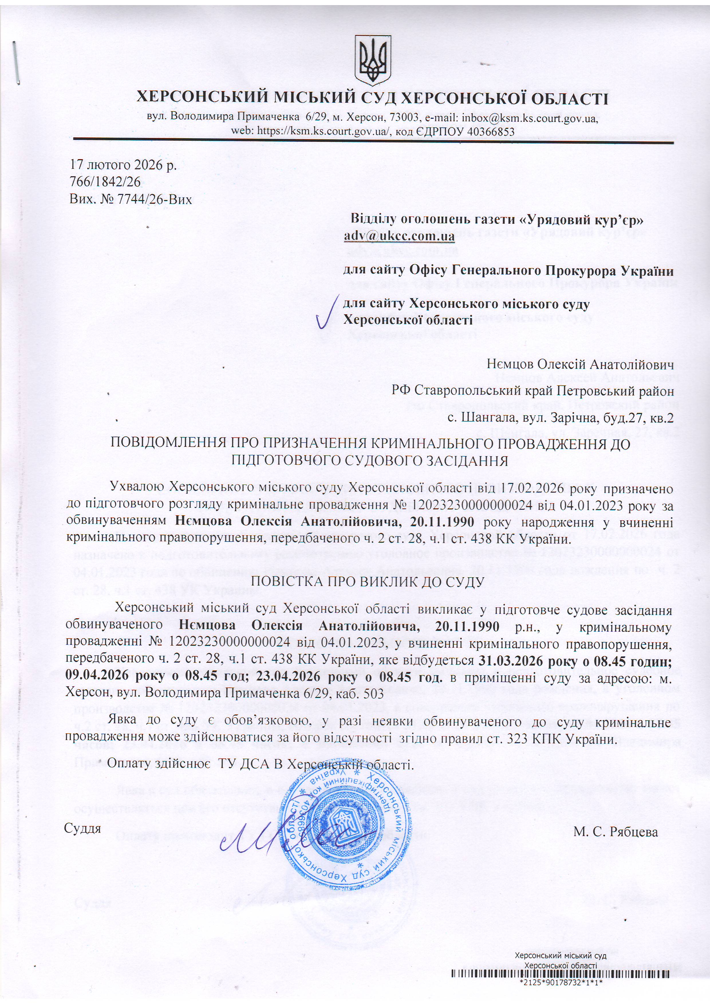 ОГОЛОШЕННЯ ПРО ВИКЛИК ДО СУДУ