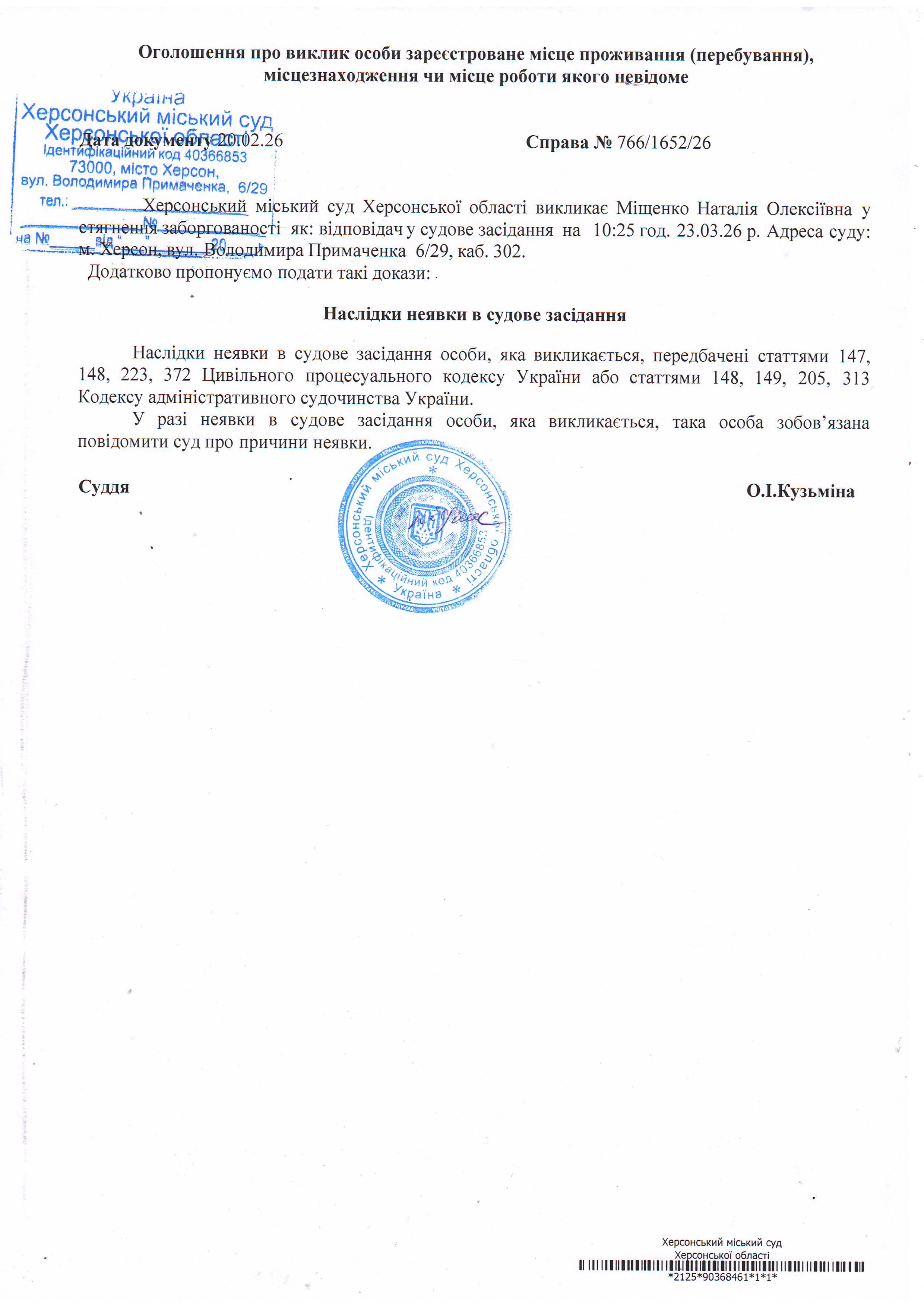 ОГОЛОШЕННЯ ПРО ВИКЛИК ДО СУДУ