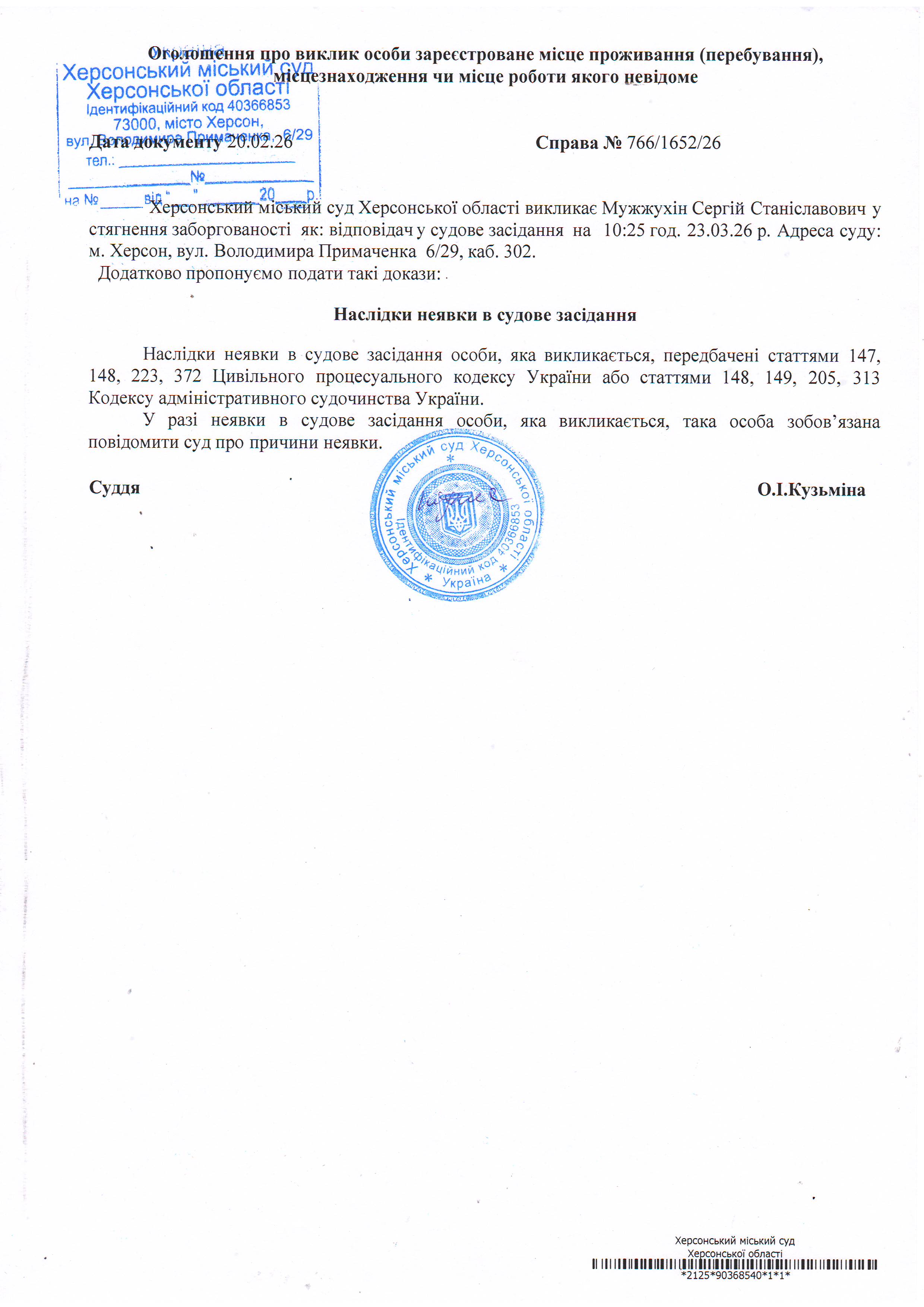 ОГОЛОШЕННЯ ПРО ВИКЛИК ДО СУДУ