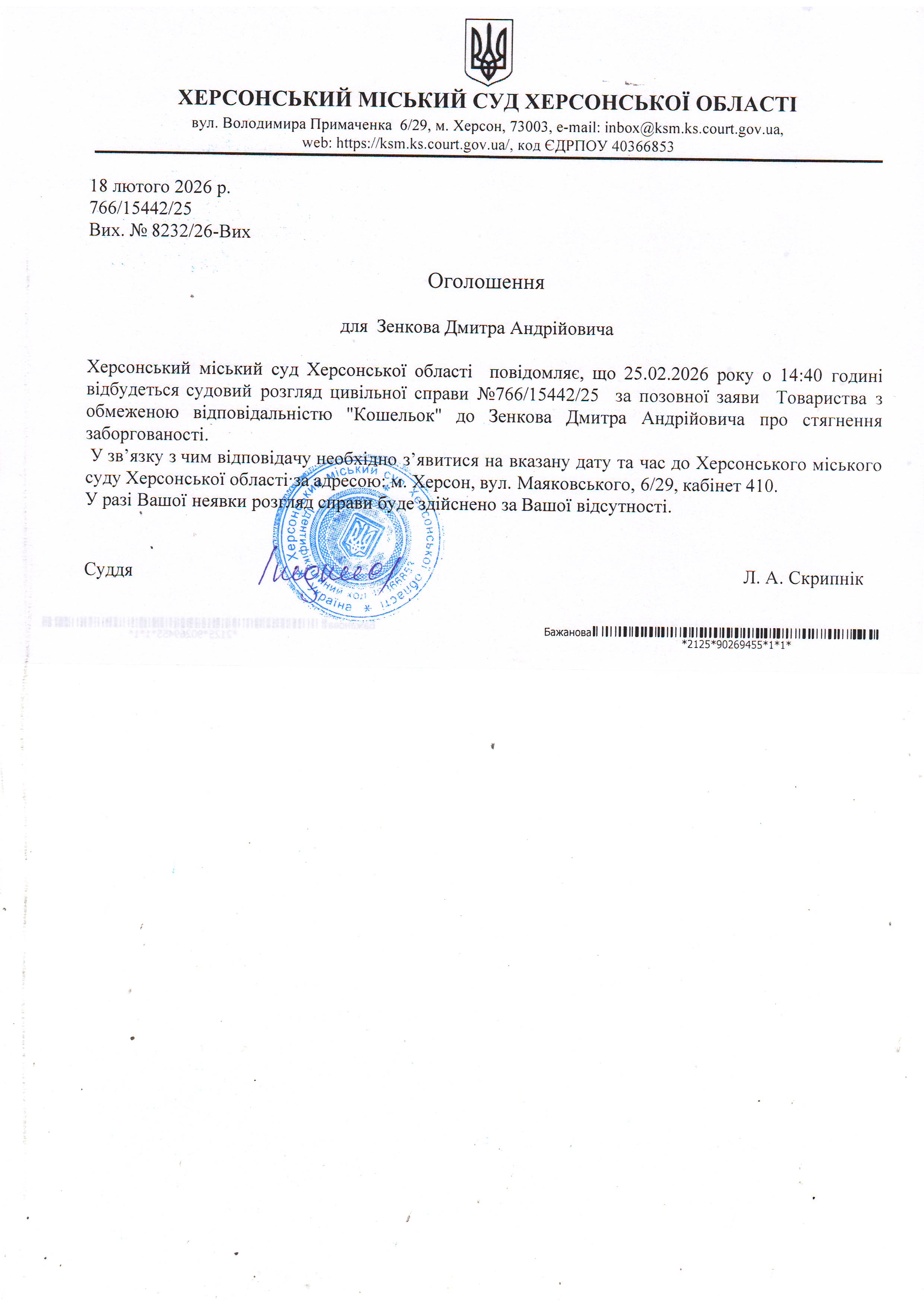 ОГОЛОШЕННЯ ПРО ВИКЛИК ДО СУДУ
