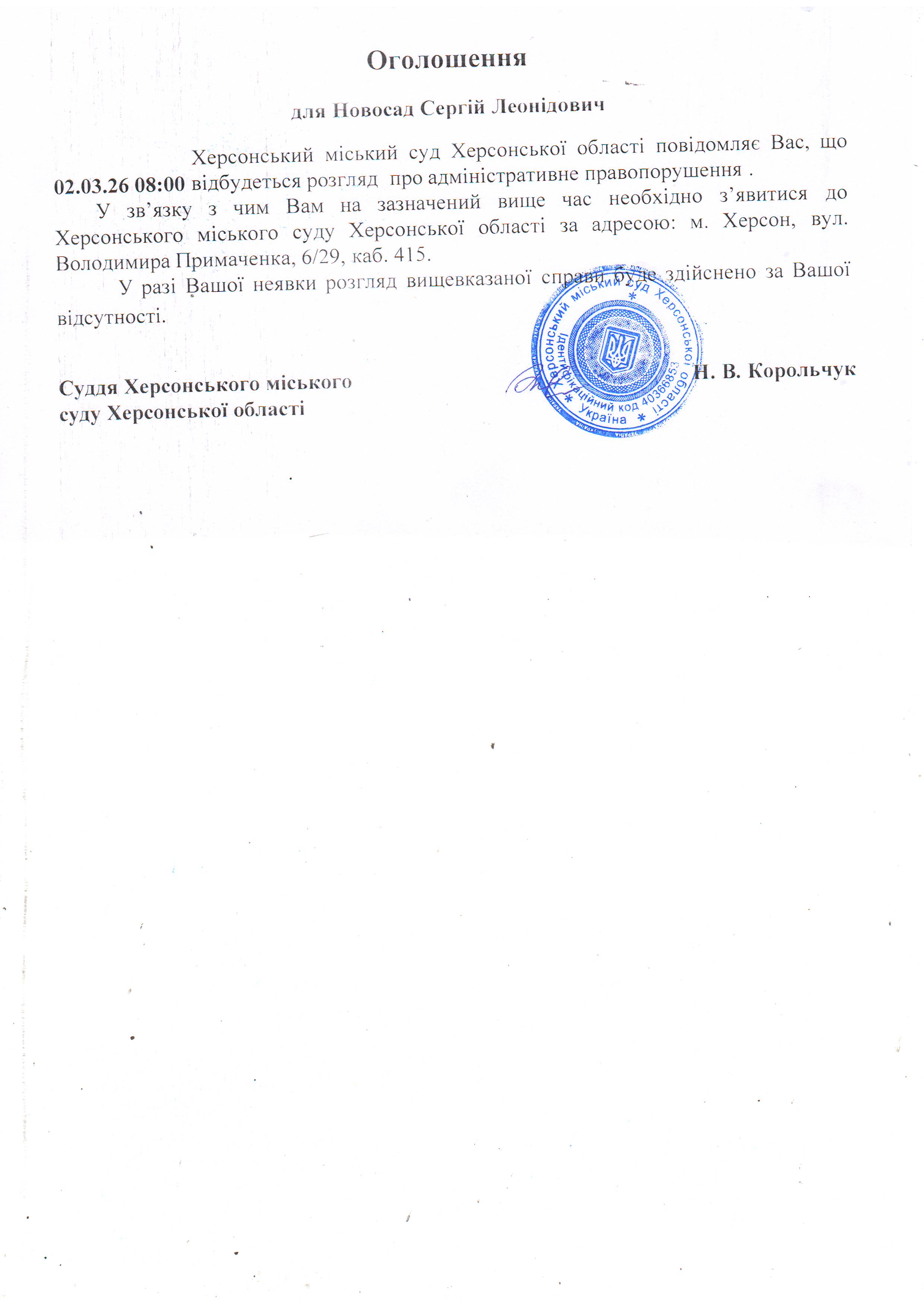 ОГОЛОШЕННЯ ПРО ВИКЛИК ДО СУДУ