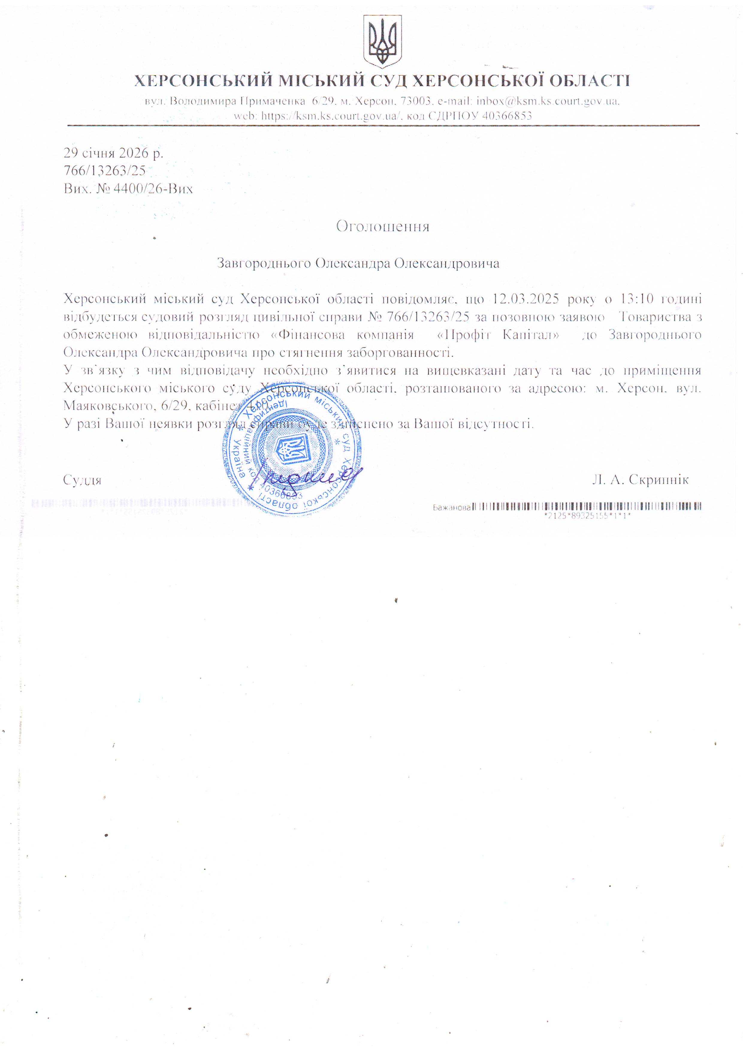 ОГОЛОШЕННЯ ПРО ВИКЛИК ДО СУДУ