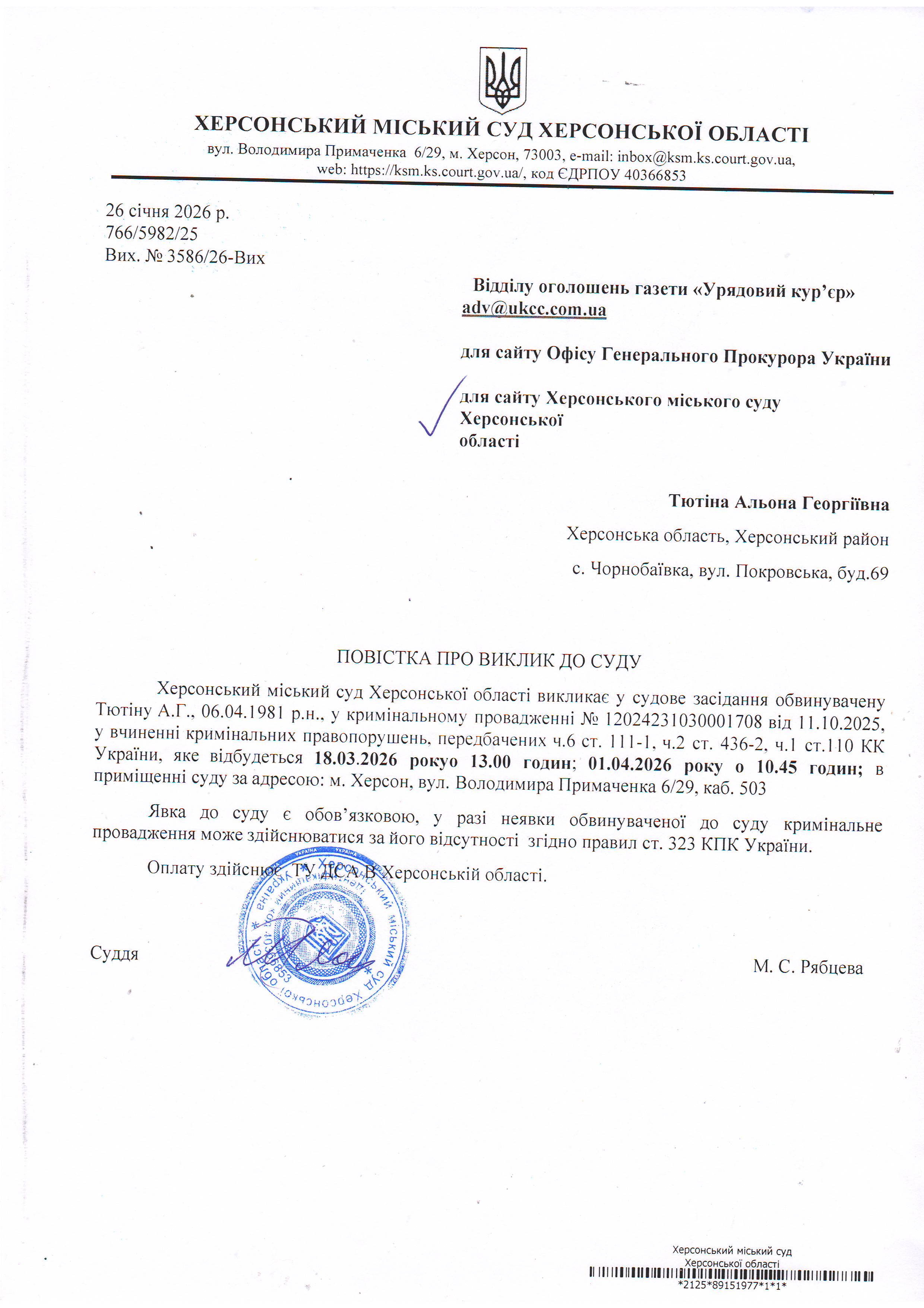 ОГОЛОШЕННЯ ПРО ВИКЛИК ДО СУДУ