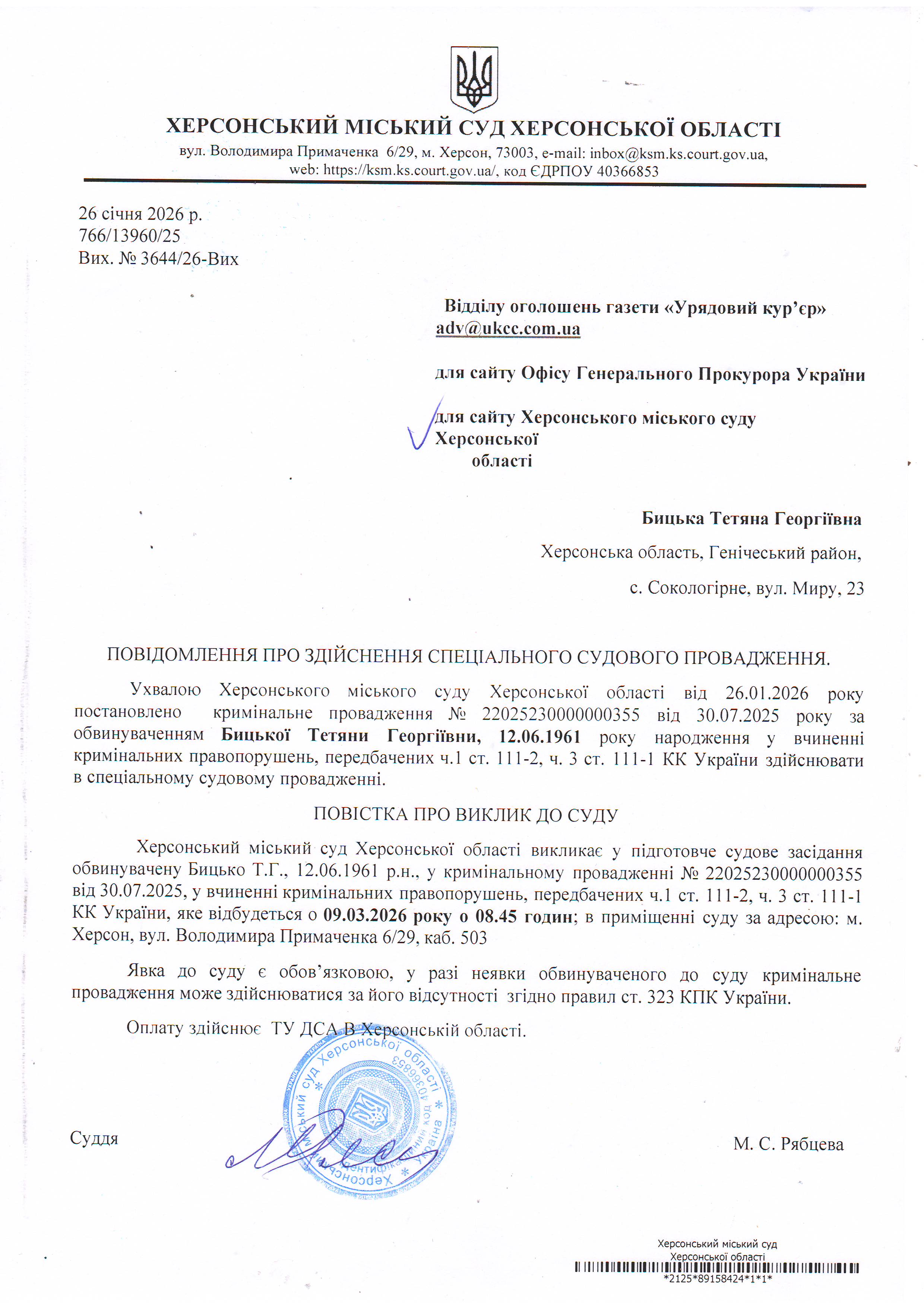 Оголошення про виклик особи в суд та повідомлення про судове рішення