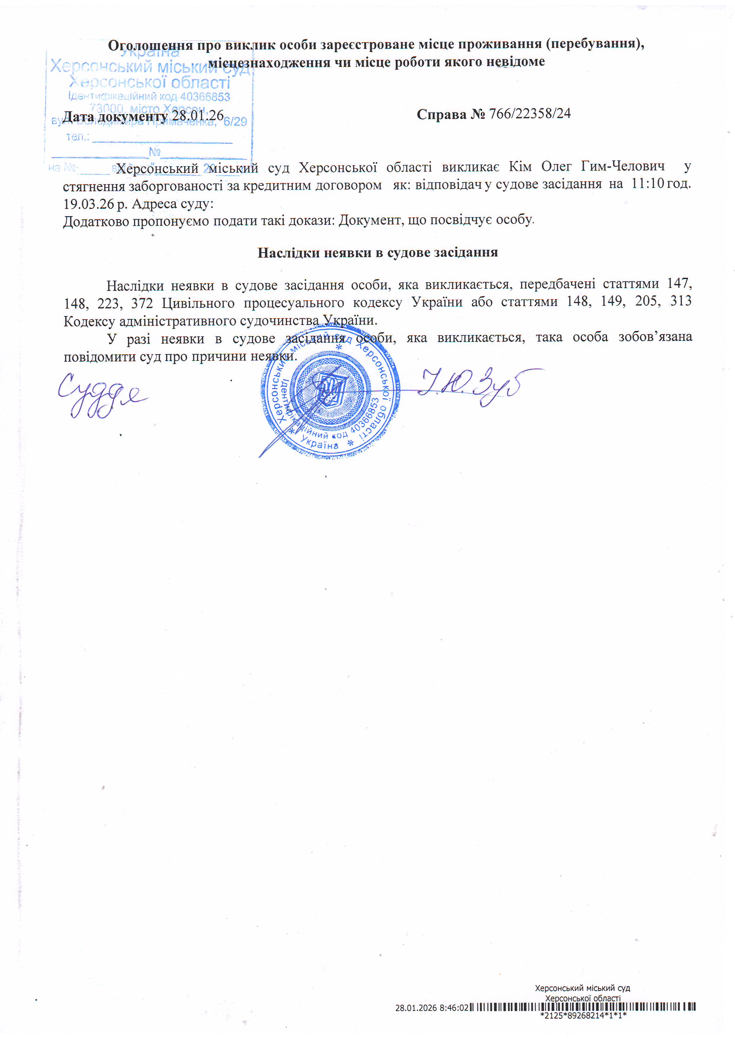 ОГОЛОШЕННЯ ПРО ВИКЛИК ДО СУДУ