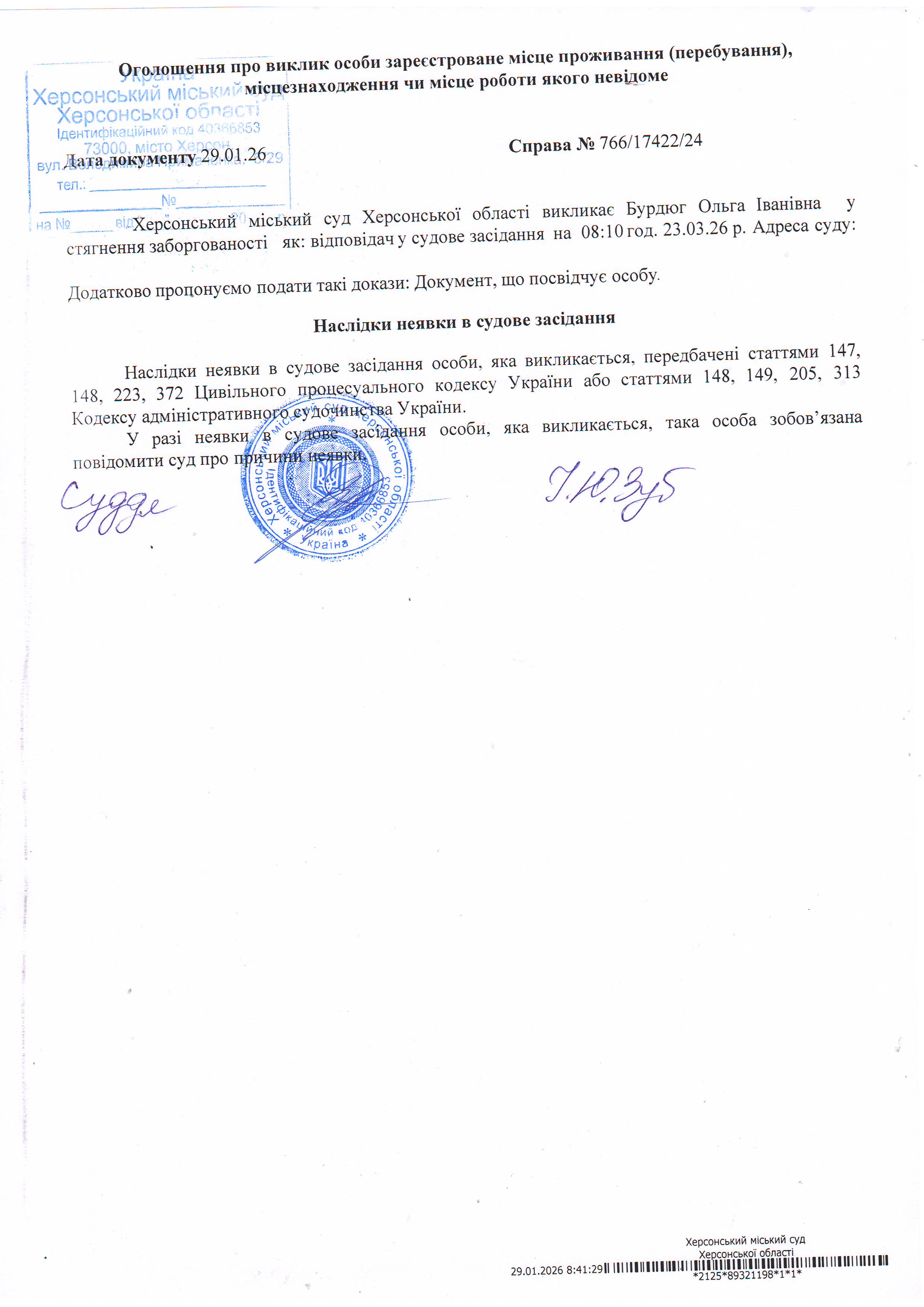 ОГОЛОШЕННЯ ПРО ВИКЛИК ДО СУДУ