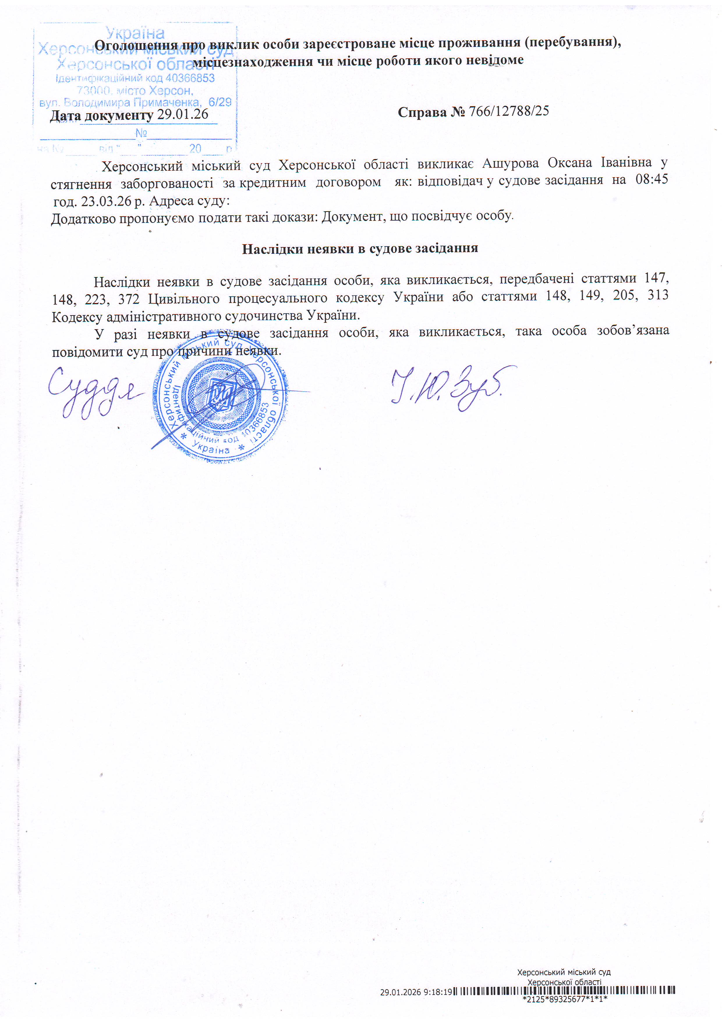 ОГОЛОШЕННЯ ПРО ВИКЛИК ДО СУДУ
