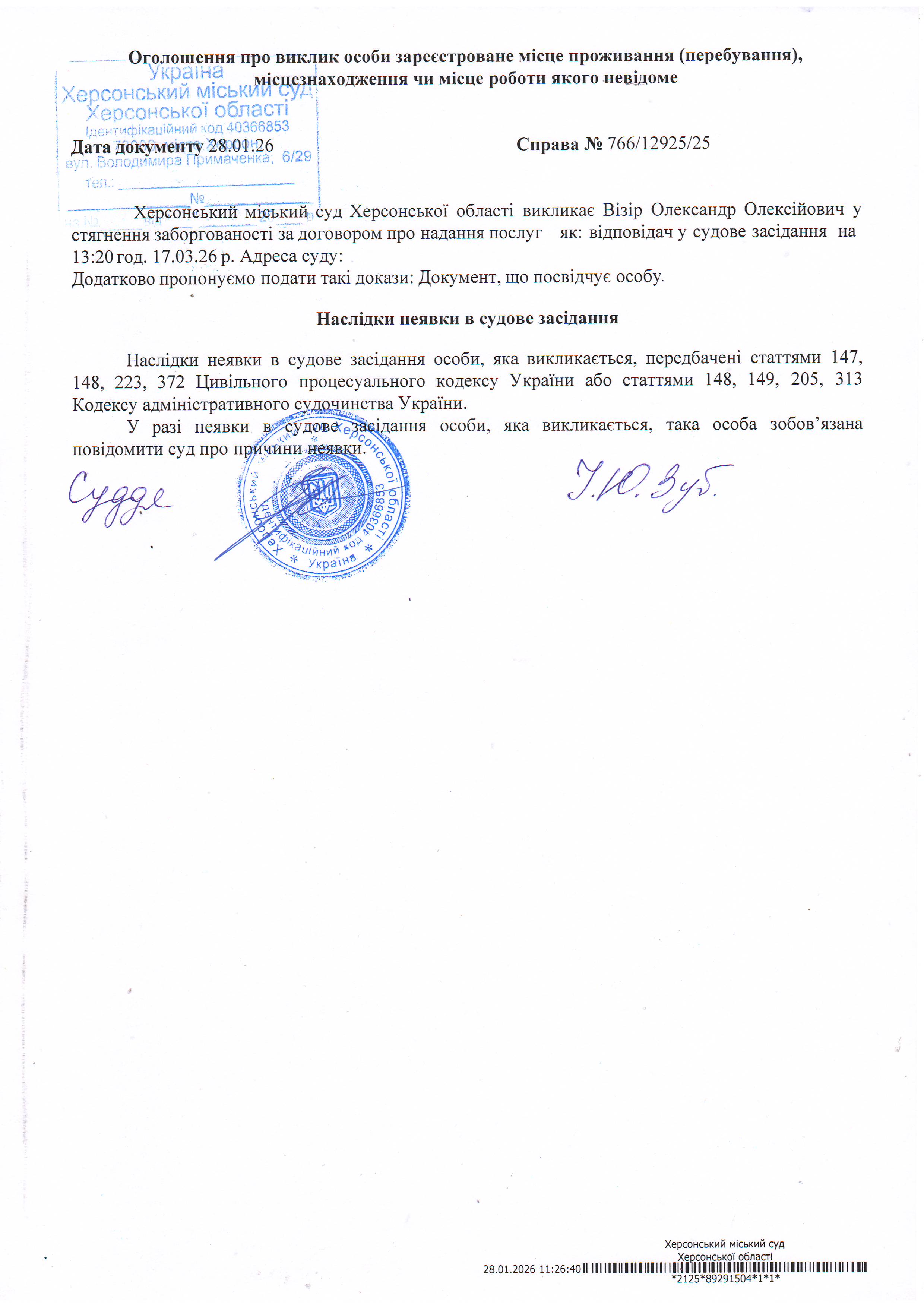 ОГОЛОШЕННЯ ПРО ВИКЛИК ДО СУДУ